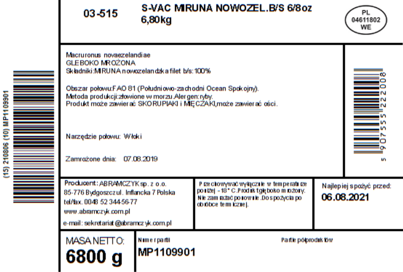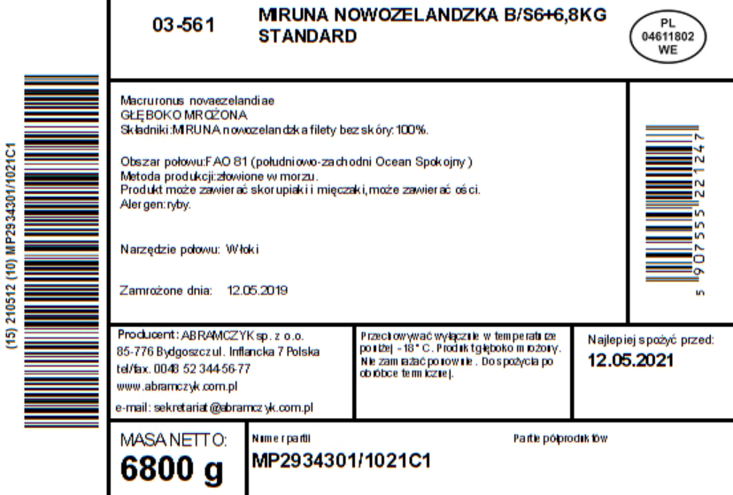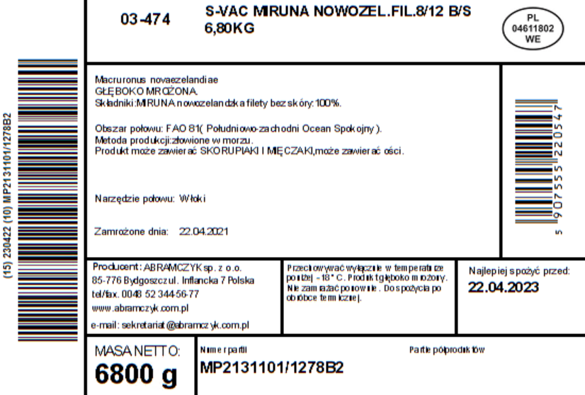 Abramczyk miruna nowozelandzka filety bez skóry 6-12+ bez dodatków 0% 6,8 kg s-vac