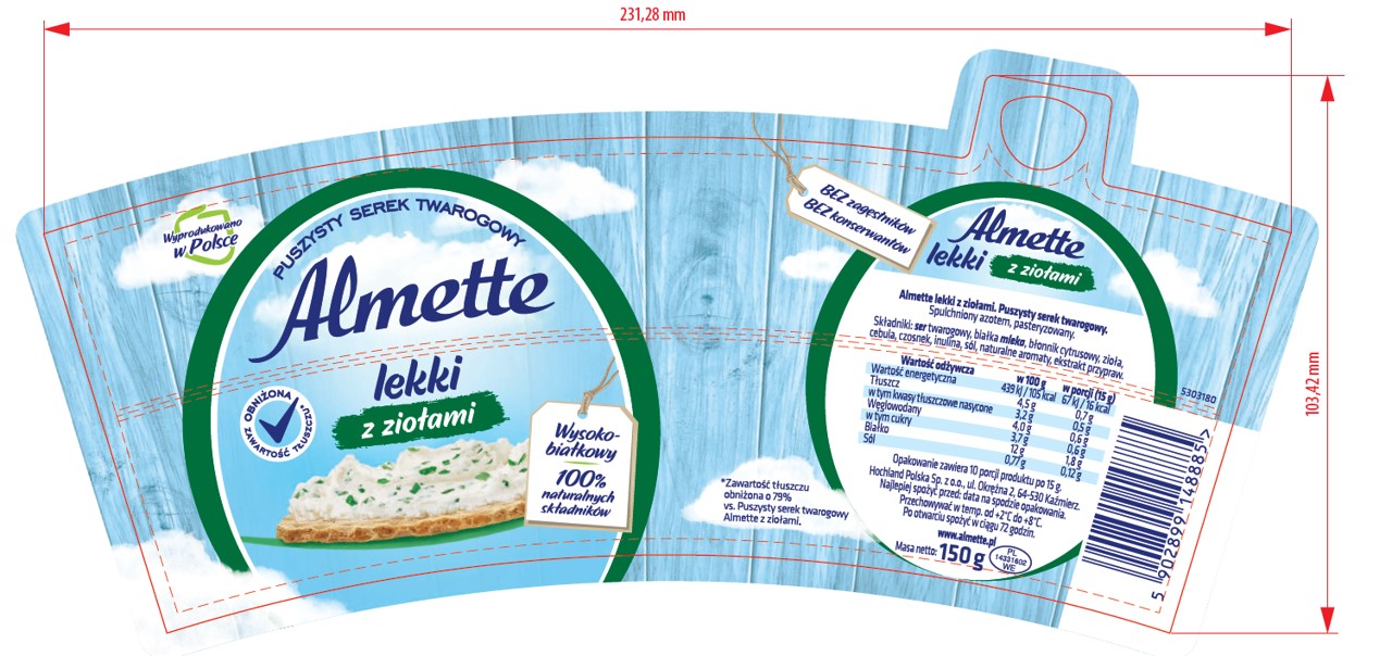 | Składniki | Ser twarogowy, białka mleka, błonnik cytrusowy, zioła, cebula, czosnek, inulina, sól, aromaty, ekstrakt przypraw. |