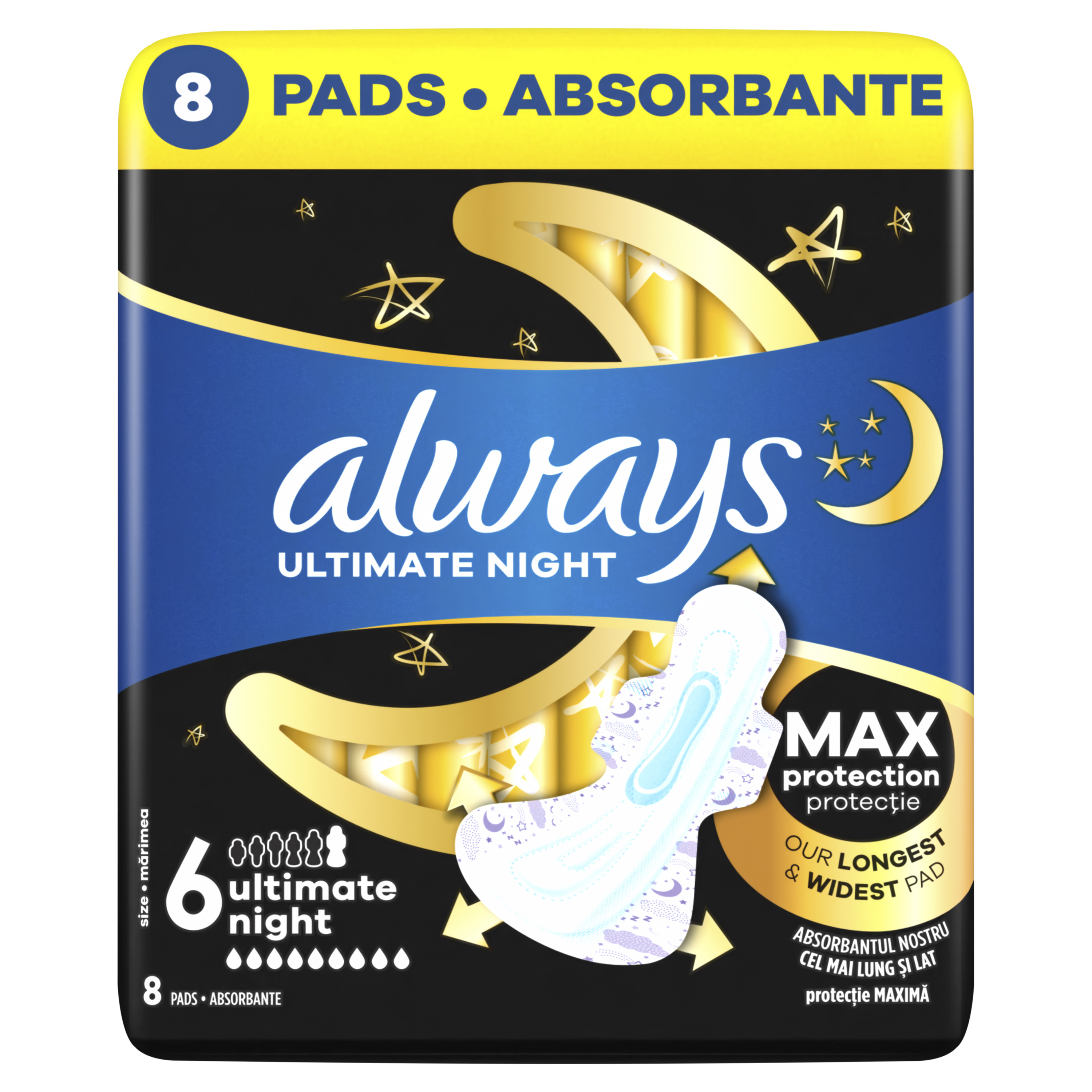 Always Ultimate Night Podpaski ze skrzydełkami, rozmiar 6, 8 sztuk