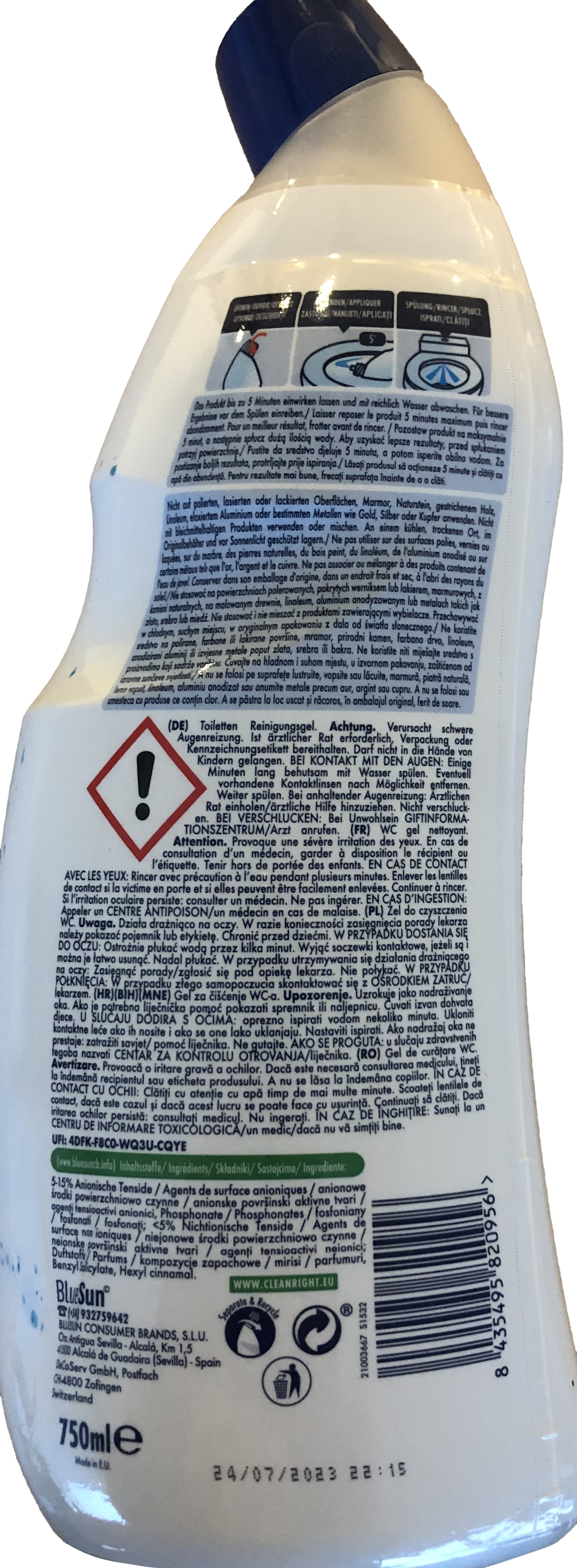 Pozostaw produkt na maksymalnie 5 minut, a następnie spłucz dużą ilością wody. aby uzyskać lepsze rezultaty przed spłukaniem potrzyj powierzchnię.