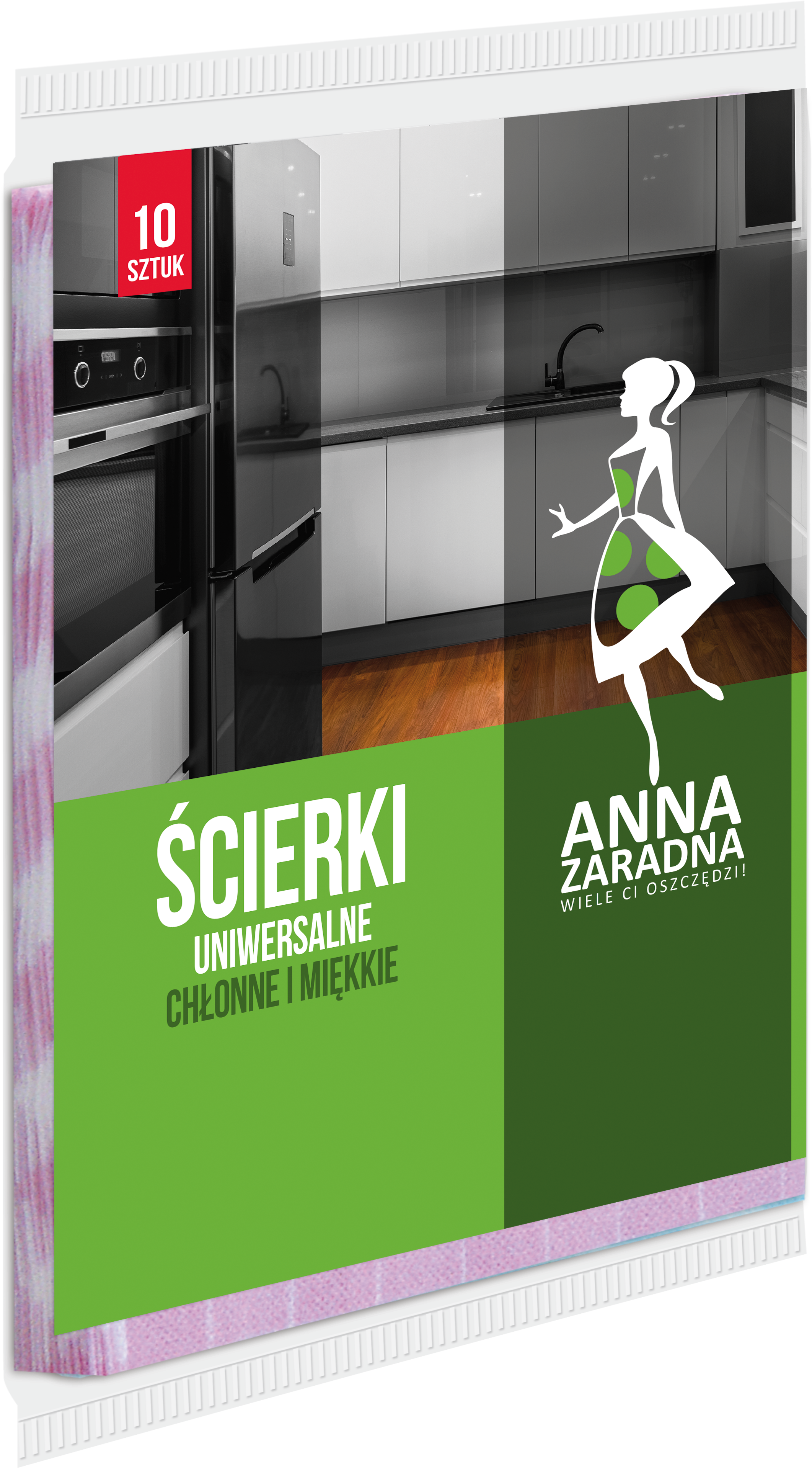 Ścierki uniwersalne Anna Zaradna przeznaczone są do czyszczenia i polerowania gładkich powierzchni, takich jak: armatura kuchenna i łazienkowa, naczynia szklane, glazura, meble, stoły, czy blaty lub RTV. Dzięki temu, że są tak chłonne i miękkie nie pozostawiają smug na czyszczonej powierzchni. Ściereczki uniwersalne są wielokrotnego użycia. Dostępne w kilku wariantach kolorystycznych (niebieska, czerwona, zielona, żółta w kratkę). W opakowaniu znajduje się 10szt ścierek tego samego koloru.