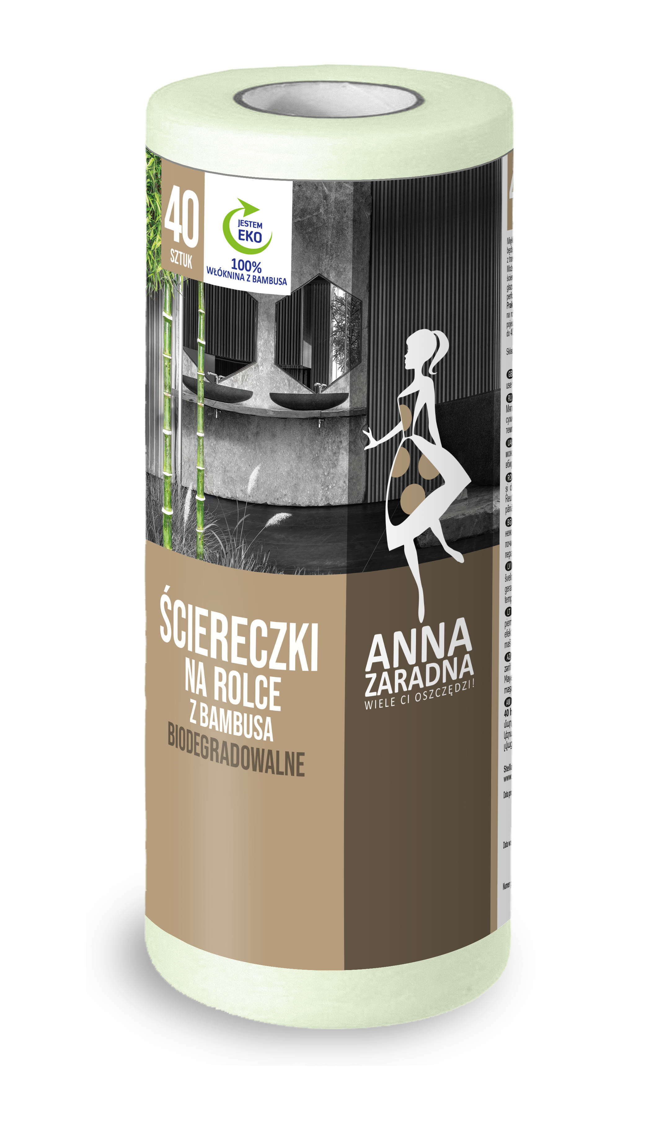 Miękkie i delikatne ściereczki bambusowe na rolce będą pomocne przy wszystkich pracach domowych. Wykonane z włókien trawy bambusowej, przyjazne środowisku - w 100% biodegradowalne. Można ich używać zarówno na mokro, jak i na sucho. Ściereczki świetnie sprawdzają się podczas wycierania i mycia stołów, blatów, zlewów, kuchenek, glazury, naczyń. będą odpowiednie także do czyszczenia armatury kuchennej i łazienkowej. Perforacja pozwala na łatwe i szybkie oderwanie ściereczki. Produkt wielokrotnego użytku, można prać w pralce w temperaturze do 40 st C. Ściereczki są nawinięte na rolce, w opakowaniu znajduje się 40szt. Tolerancja parametrów produktu +/- 10%.