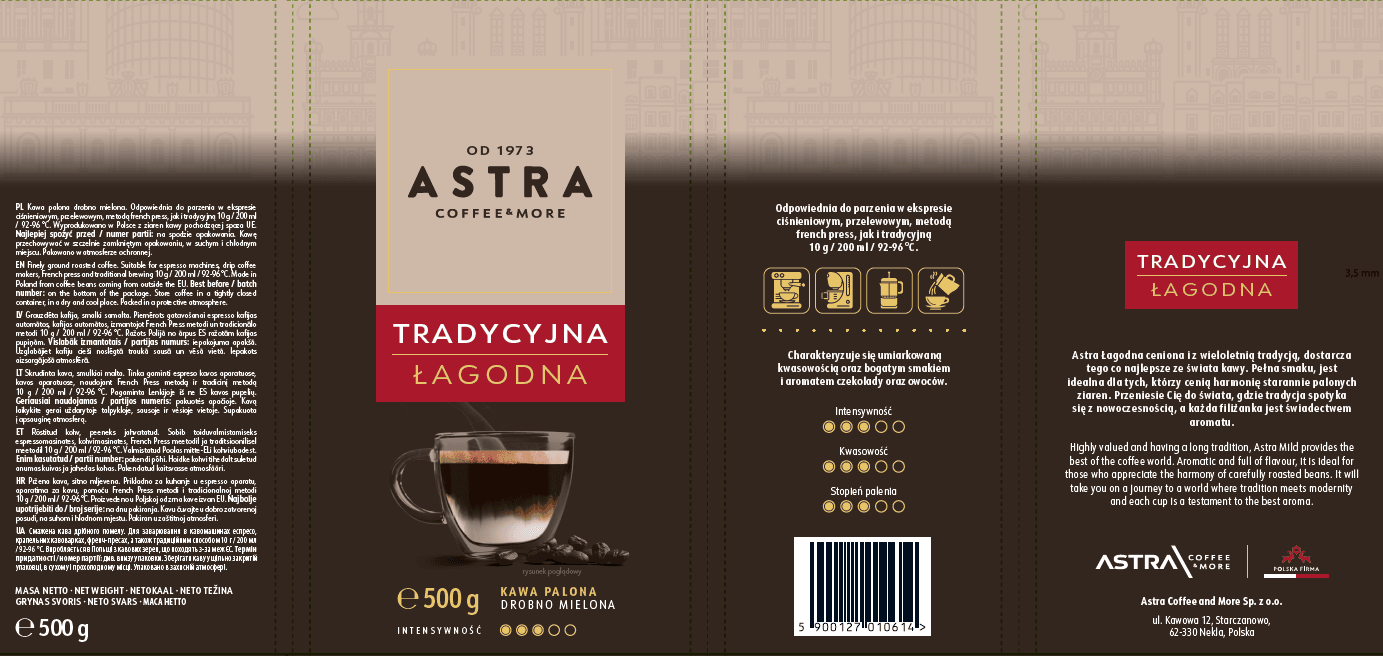 Astra Coffee & More Sp. z o.o.Ulica i numer: Kawowa 12Kod pocztowy i miasto: 62-330 Nekla PL