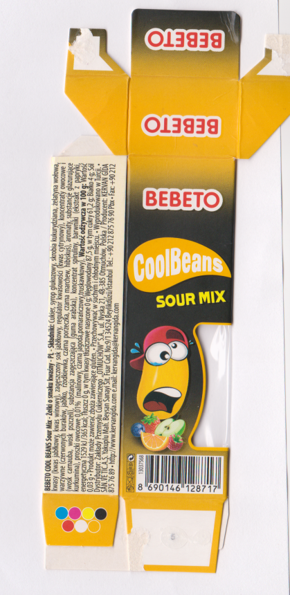 Drażetki kwaśne o smaku owocowym w kształcie fasolek. Charakteryzuje się smakiem i