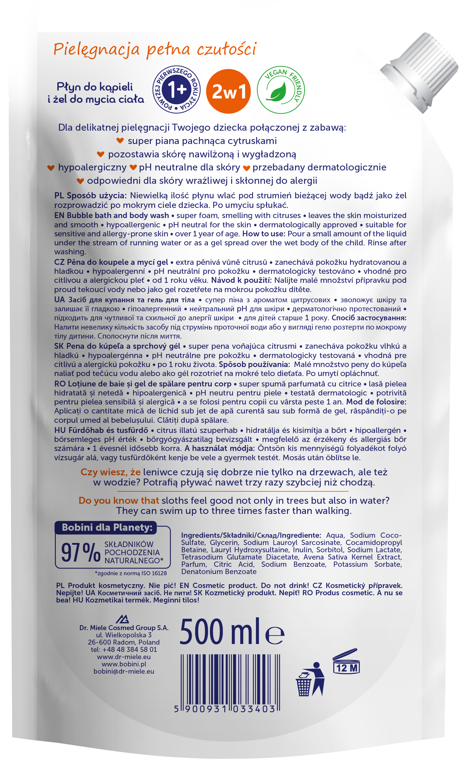 Jako płyn do kąpieli: wlać niewielką ilość pod strumień bieżącej wody. Jako żel pod prysznic: rozprowadzić niewielką ilość na wilgotnej skórze, następnie spłukać ciepłą wodą.