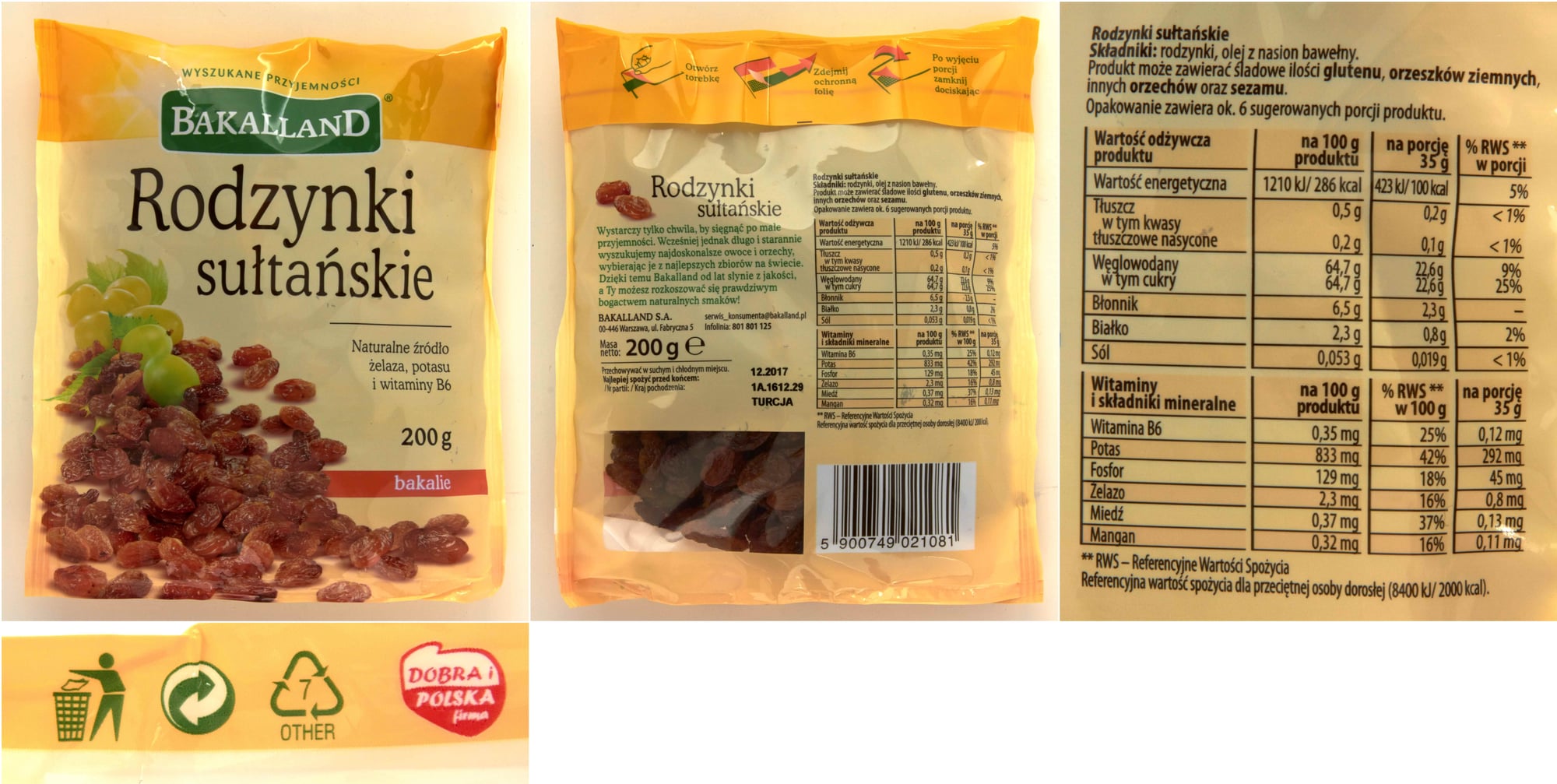 | Składniki | Rodzynki, olej z nasion bawełny. |