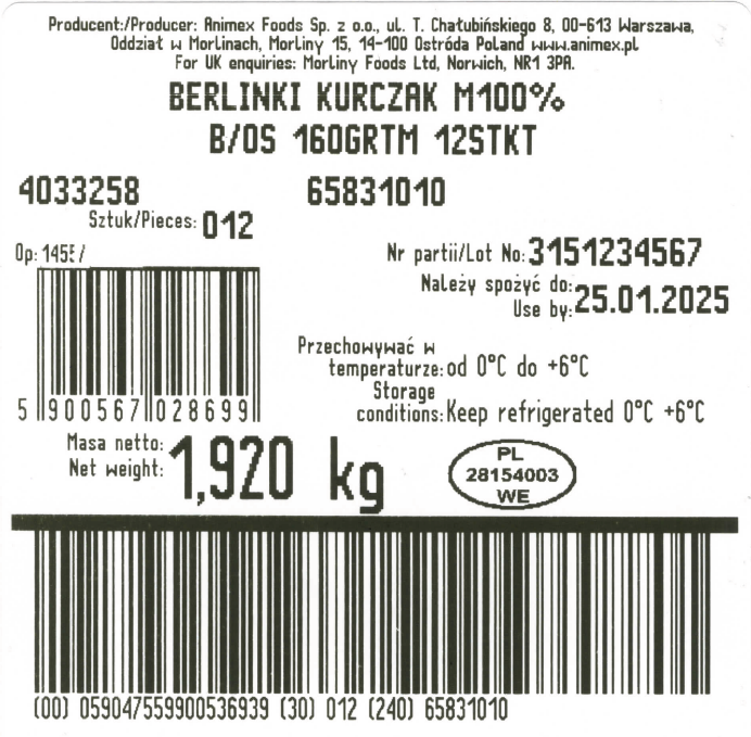 | Adres podmiotu wprowadzającego do obrotu | Nazwa firmy: animex foods sp. z o.o. ul. t. chałubińskiego 8, 00-613 warszawa, oddział w morlinach ulica i numer: morliny 15 kod pocztowy i miasto: 14-100 ostróda pl |