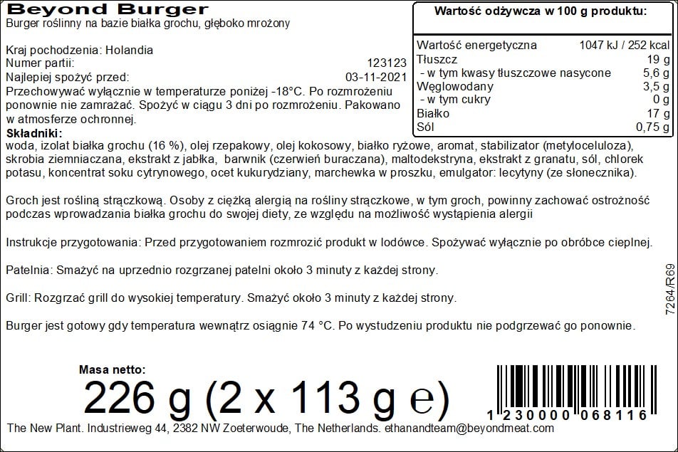 Krótki opis marketingowyBeyond Burger. Burger Roślinny Na Bazie Białka Grochu