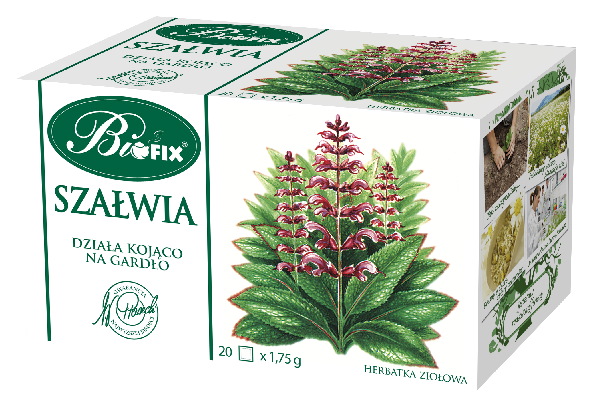 Szałwia działa kojąco na jamę ustną, gardło i struny głosowe. Wspiera odporność organizmu, przyczynia się również do prawidłowego funkcjonowania układu pokarmowego.