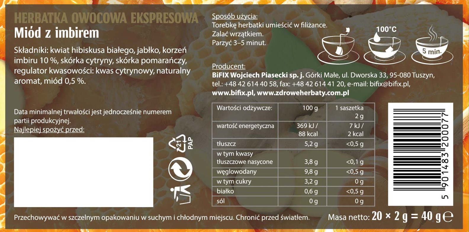 Bifix premium miodowa imbir 40 g