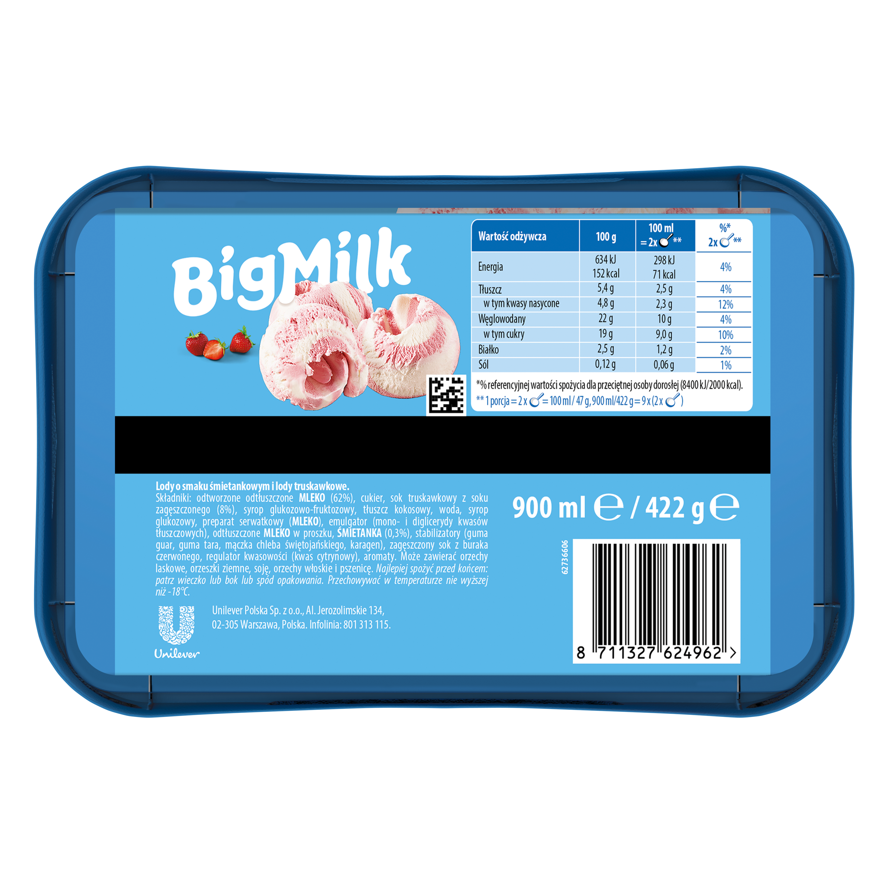 Big Milk Lody śmietankowo-truskawkowe 900 ml