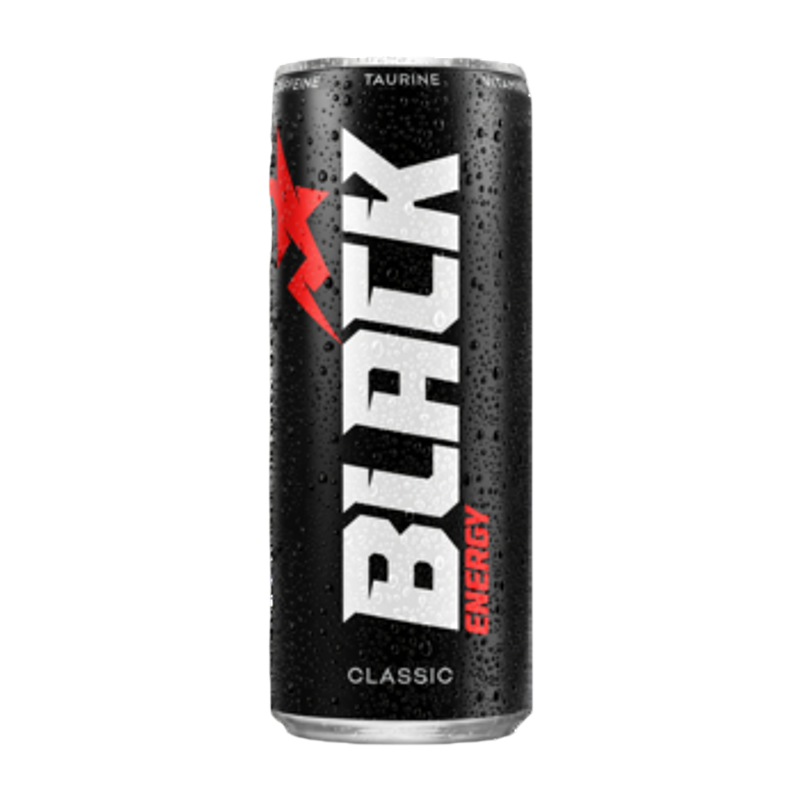BLACK ENERGY – gazowany napój energetyzujący z dodatkiem witamin (niacyna, kwas pantotenowy, witamina B6, witamina B12). Napój pasteryzowany.