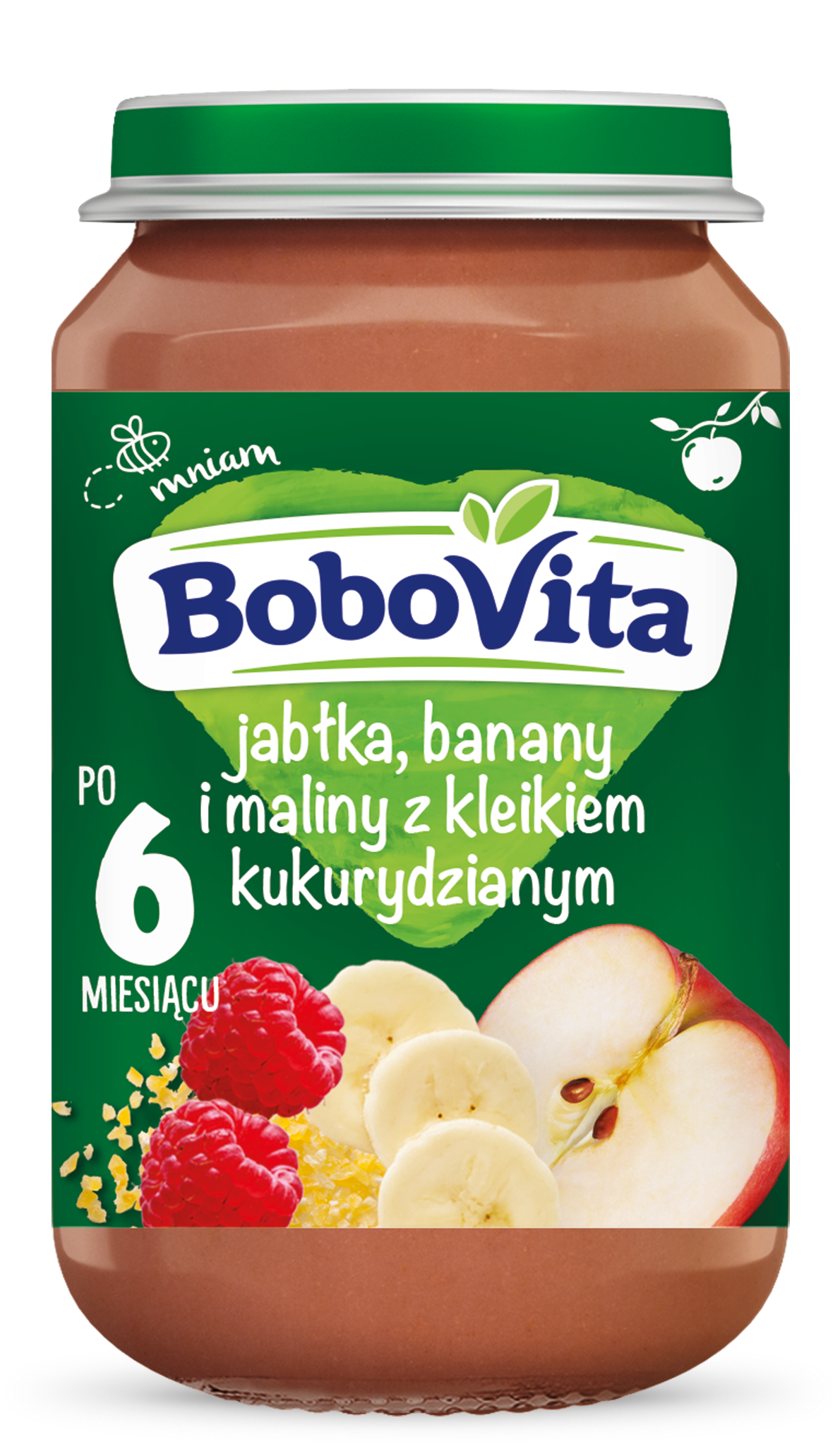 Bobovita deserek jabłka, banany i maliny z kleikiem kukurydzianym po 6 miesiącu 190 g