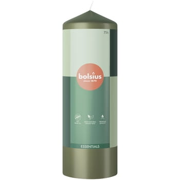 Odświeżyliśmy naszą kolekcję Essentials! Gładka świeca pieńkowa Bolsius w kolorze zielonej oliwki ma 20 cm wysokości, a jej czas palenia wynosi 75 godzin. Sposób wykonania odzwierciedla naszą troskę o dobro ludzi i naszej planety – wykorzystujemy wegański wosk, nie stosujemy natomiast oleju palmowego. Kolekcja obejmuje eleganckie świece w różnych rozmiarach i kolorach, które świetnie się ze sobą komponują. To cenny dodatek do każdego wnętrza!