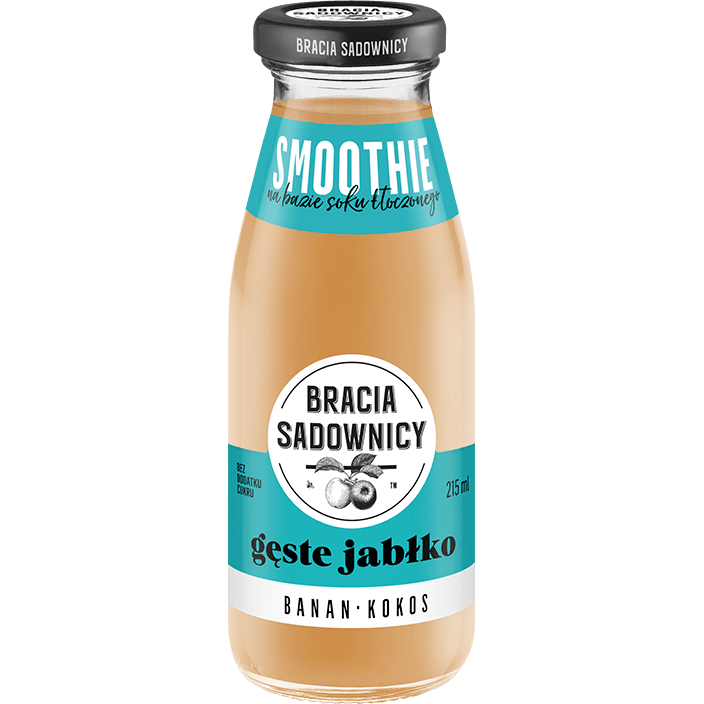 Pierwsze na polskim rynku smoothie na bazie tłoczonych na zimno soków owocowych, bez dodatku cukru. Krótki, prosty skład. Dzięki lekkiej pasteryzacji produkt zachowuje walory smakowe świeżych owoców.
