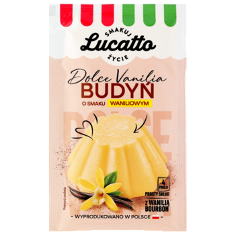 | Instrukcje dotyczące przygotowania | Sposób przyrządzenia: 1. z 0,5 l zimnego mleka odlej pół szklanki i rozmieszaj w nim zawartość torebki z 2 łyżkami cukru. 2. pozostałe mleko zagotuj. do gotującego się mleka wlej rozmieszany proszek budyniowy z cukrem i ciągle mieszając, zagotuj. 3. gotowy budyń wlej do salaterek. spożywaj na ciepło lub na zimno. |