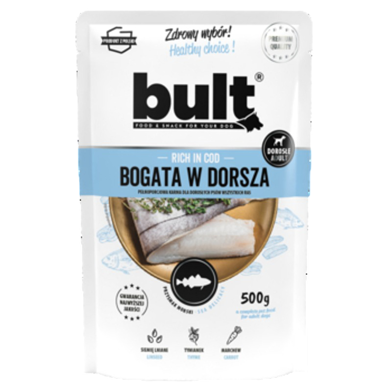 Pełnoporcjowa saszetka bult bogata w dorsza charakteryzuje się dużą zawartością kwasów omega-3 oraz omega-6, które wpływają korzystnie na skórę oraz sierść czworonoga. Dodatek tymianku zwiększa smakowitość karmy oraz wspiera układ odpornościowy pupila. Saszetka bult bogata w dorsza zawiera również siemię lniane, które zapobiega zaparciom oraz marchew czyli naturalny przeciwutleniacz. Karma nadaje się dla dorosłych psów wszystkich ras. Wygodne opakowanie pozwala na łatwe otwieranie i przechowywanie pożywienia. Dostępne opakowania: 100 g i 500 g.