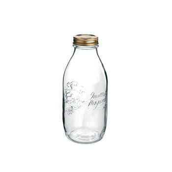 Szklana butelka z metalowym wiekiem renomowanej firmy Bormioli Rocco.Pojemnik o pojemności 1 litra idealnie nadaje się do przechowywania różnego rodzaju płynnej i sypkiej żywności. Wykonana z wysokiej jakości szkła butelka, charakteryzuje się prostą formą oraz oryginalnym kształtem.Delikatne zbabienia, w formie żłobień nadają jej lekkości, dzięki czemu będzie ozdobą Twojej kuchni. Naczynie świetnie nadaje się do podawania kompotu czy soku domowego wyrobu, dzięki czemu będzie służył Tobie i Twoim bliskim w wielu przyjemnych chwilach.W butelce również można przechowywać mleko lub koktajl owocowy.