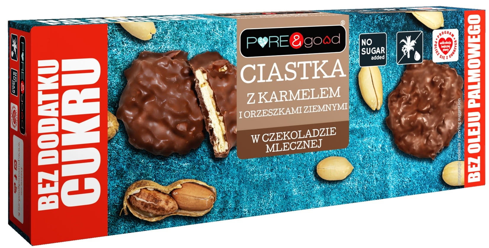 Ciastka z karmelem i z orzechami ziemnymi w czekoladzie mlecznej bez dodatku cukru 128 g