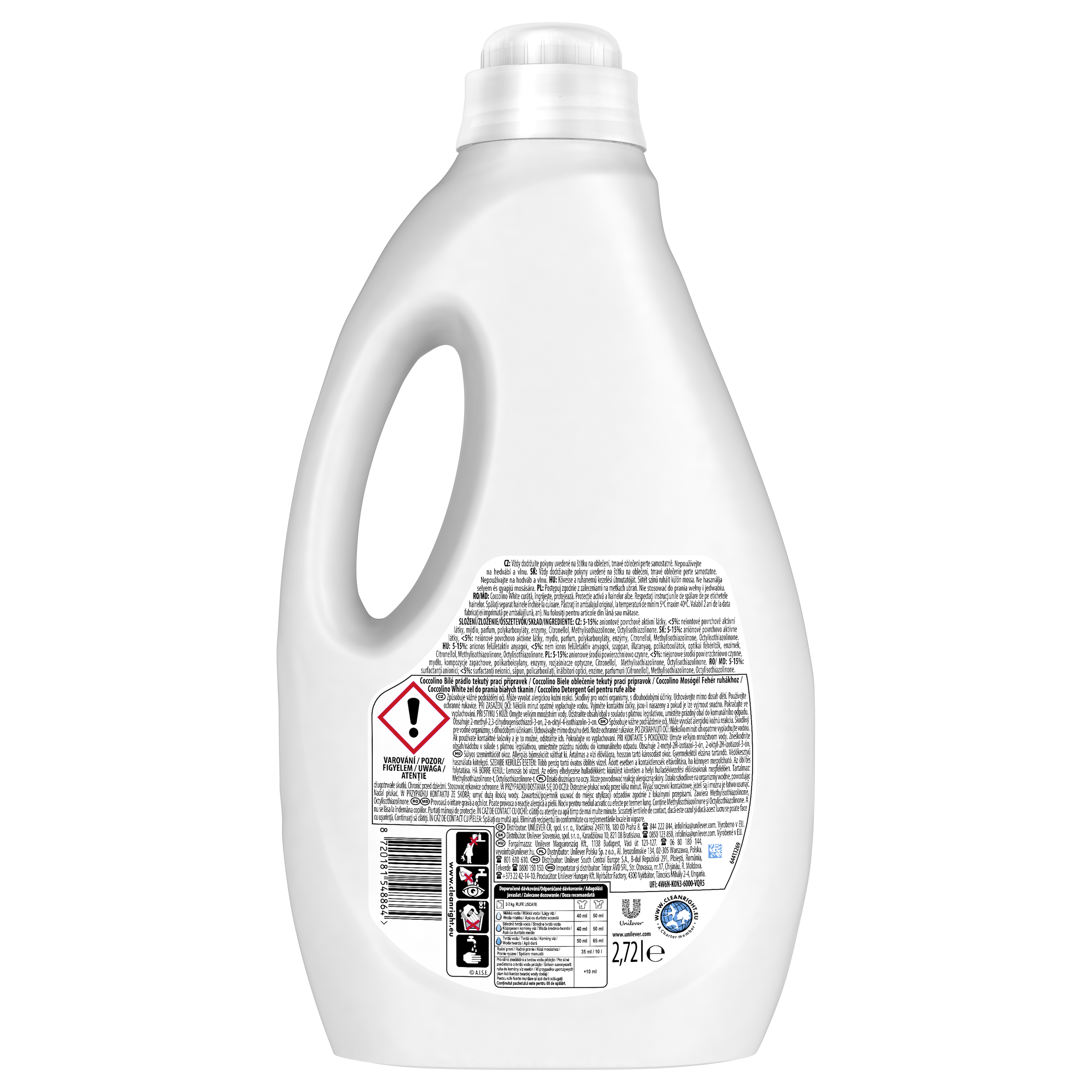 | Oświadczenia o bezpieczeństwie i zagrożeniach AISE | Unikać kontaktu z oczami. W razie kontaktu z oczami obficie przemyć oczy wodą., Osoby o wrażliwej lub uszkodzonej skórze powinny unikać dłuższego kontaktu z produktem., Przechowywać poza zasięgiem dzieci., Po użyciu umyć ręce. |