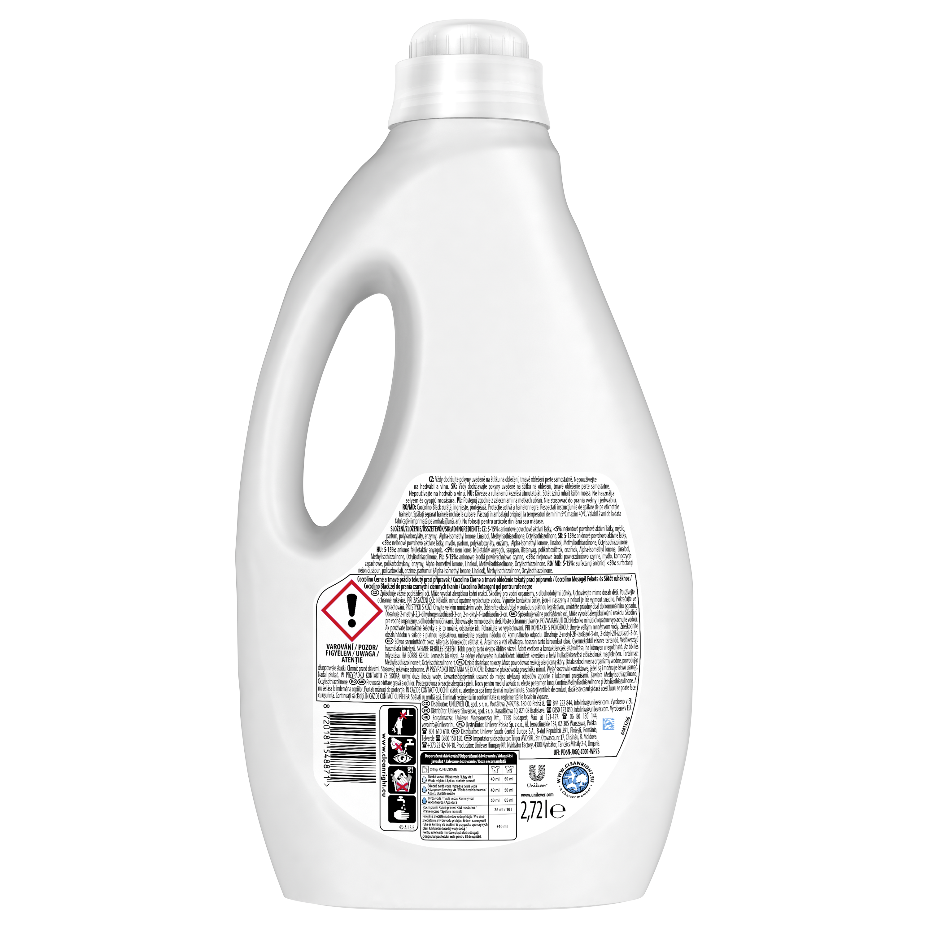 | Oświadczenia o bezpieczeństwie i zagrożeniach AISE | Unikać kontaktu z oczami. W razie kontaktu z oczami obficie przemyć oczy wodą., Osoby o wrażliwej lub uszkodzonej skórze powinny unikać dłuższego kontaktu z produktem., Przechowywać poza zasięgiem dzieci., Po użyciu umyć ręce. |