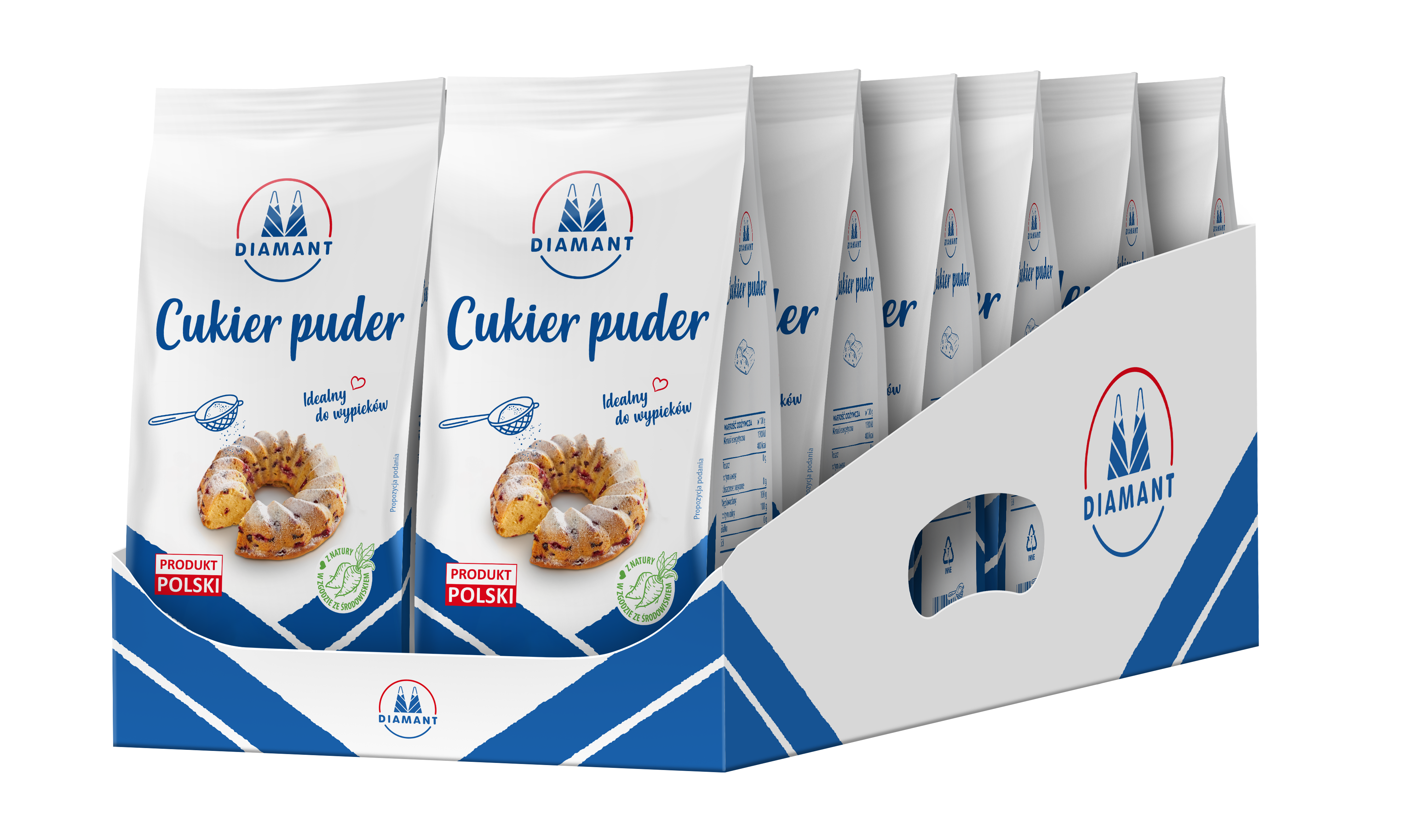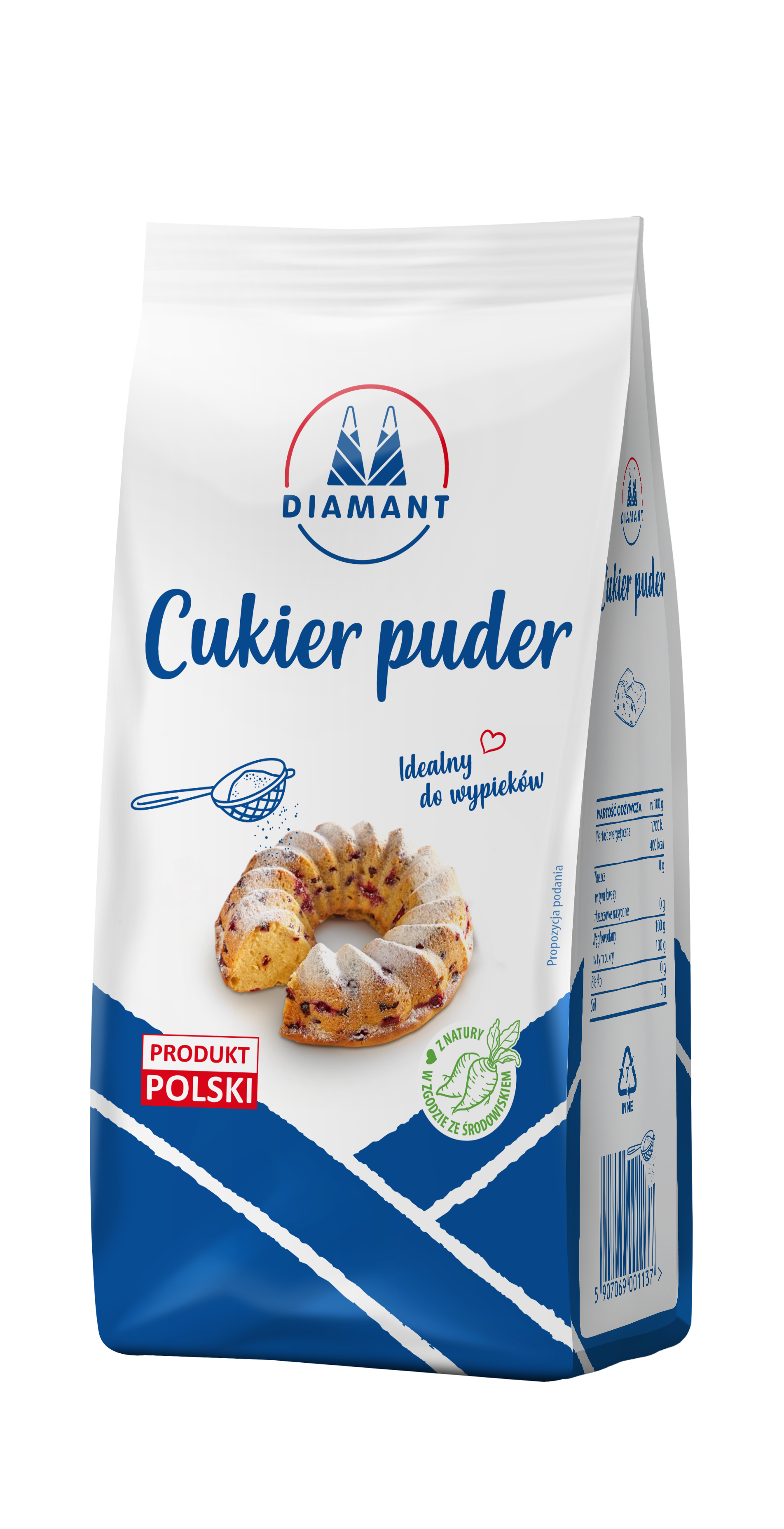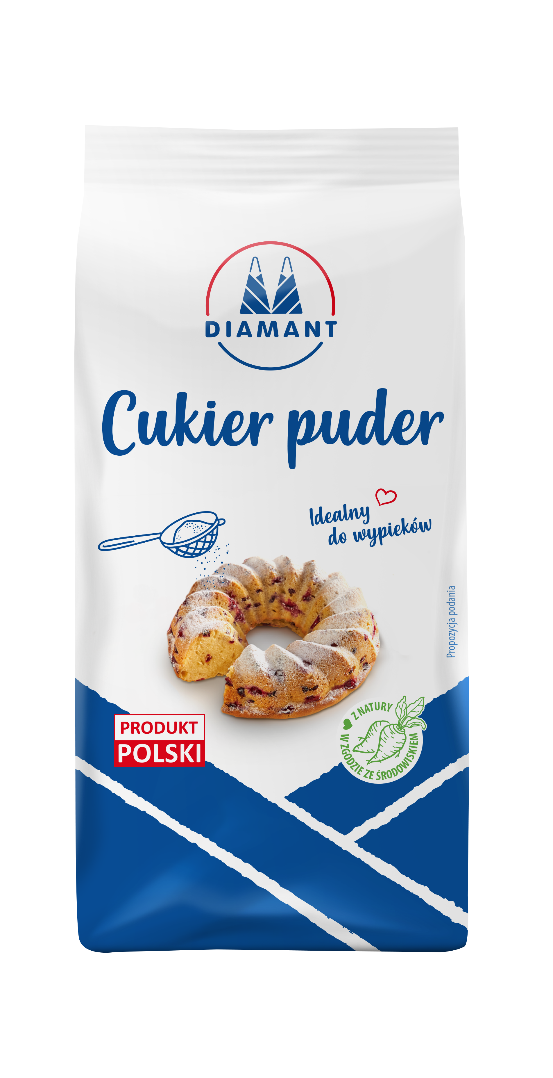 Cukier puder DIAMANT to bardzo drobno zmielony cukier kryształ. To znakomity skladnik do wypieku delikatnych i pulchnych ciast, przygotowywania lekkich kremow, bitej smietany a takze mas serowych i makowych. Doskonale nadaje sie do ozdabiania wypiekow i deserow. Swietnie rowniez sprawdza sie jako składnik lukru czy polewy, ktore dzięki niemu sa elastyczne, nie pekaja i po wyschnieciu maja intensywnie swietlisty, bialy kolor.