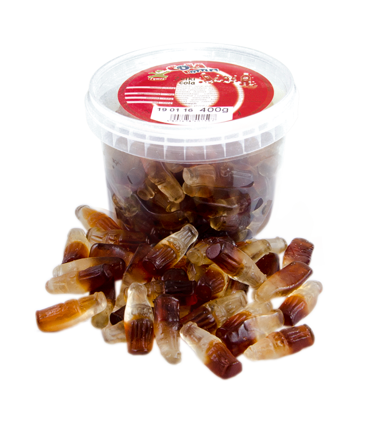 Żelki o smaku i kształcie butelek Coca-Coli zachwycą miłośników tego napoju. barwniki i brak konserwantów wyróżnia je na tle innych żelków dostępnych na rynku. Duże opakowanie – w sam raz, żeby podzielić się wspaniałym smakiem z przyjaciółmi.
