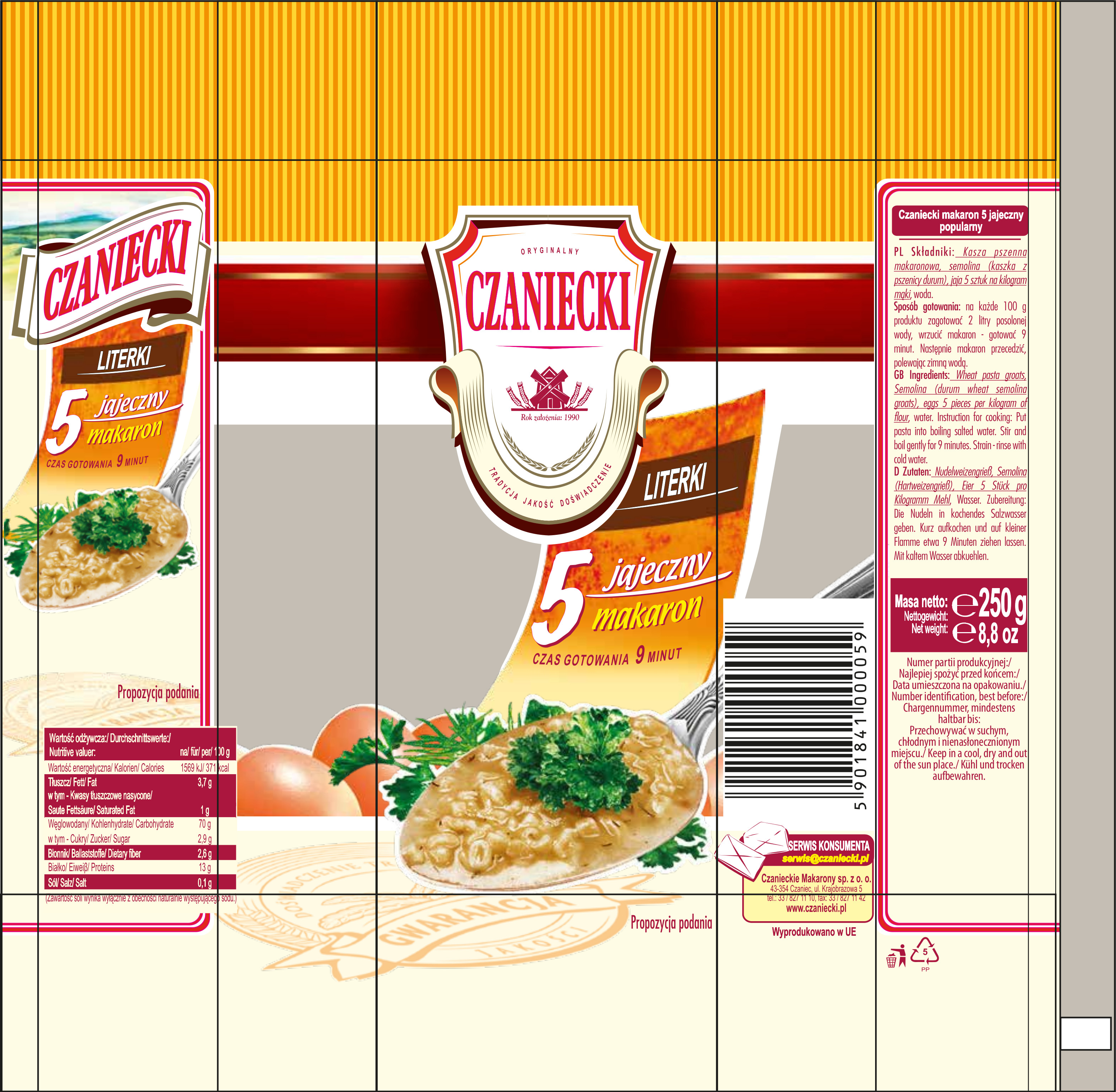| Składniki | KASZA PSZENNA MAKARONOWA, SEMOLINA (KASZKA Z PSZENICY DURUM), MASA JAJOWA PASTERYZOWANA CHŁODZONA 21,3%, WODA |