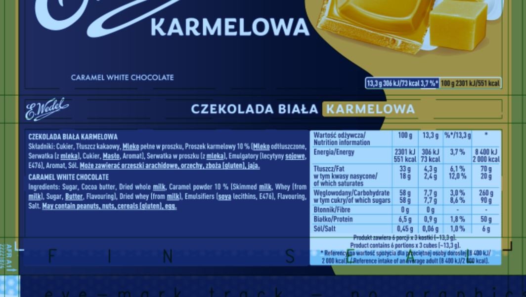 | Krótki opis marketingowy | Czekolada biała karmelowa to oryginalne połączenie innowacyjności i wedlowskiej tradycji czekoladnictwa. |