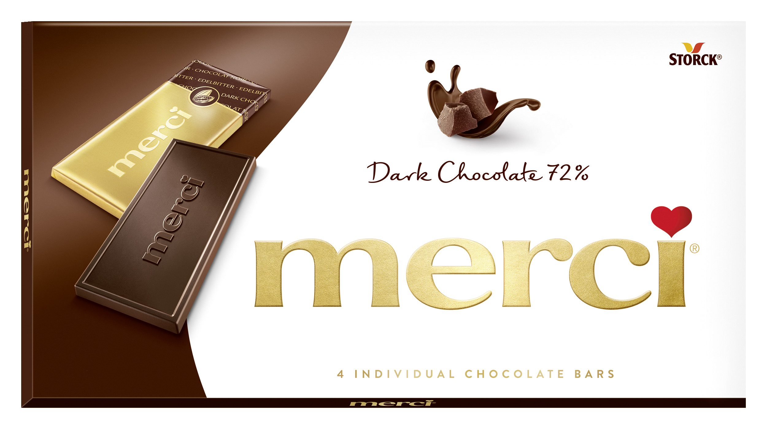 Merci czekolada to pojedynczo pakowane wykwintne 4 sztuki czekolady gorzkiej 72%. Merci czekolady są smaczną przekąską dla siebie, jak również są dobrym prezentem, o wysokiej jakości i na każdą okazję.
