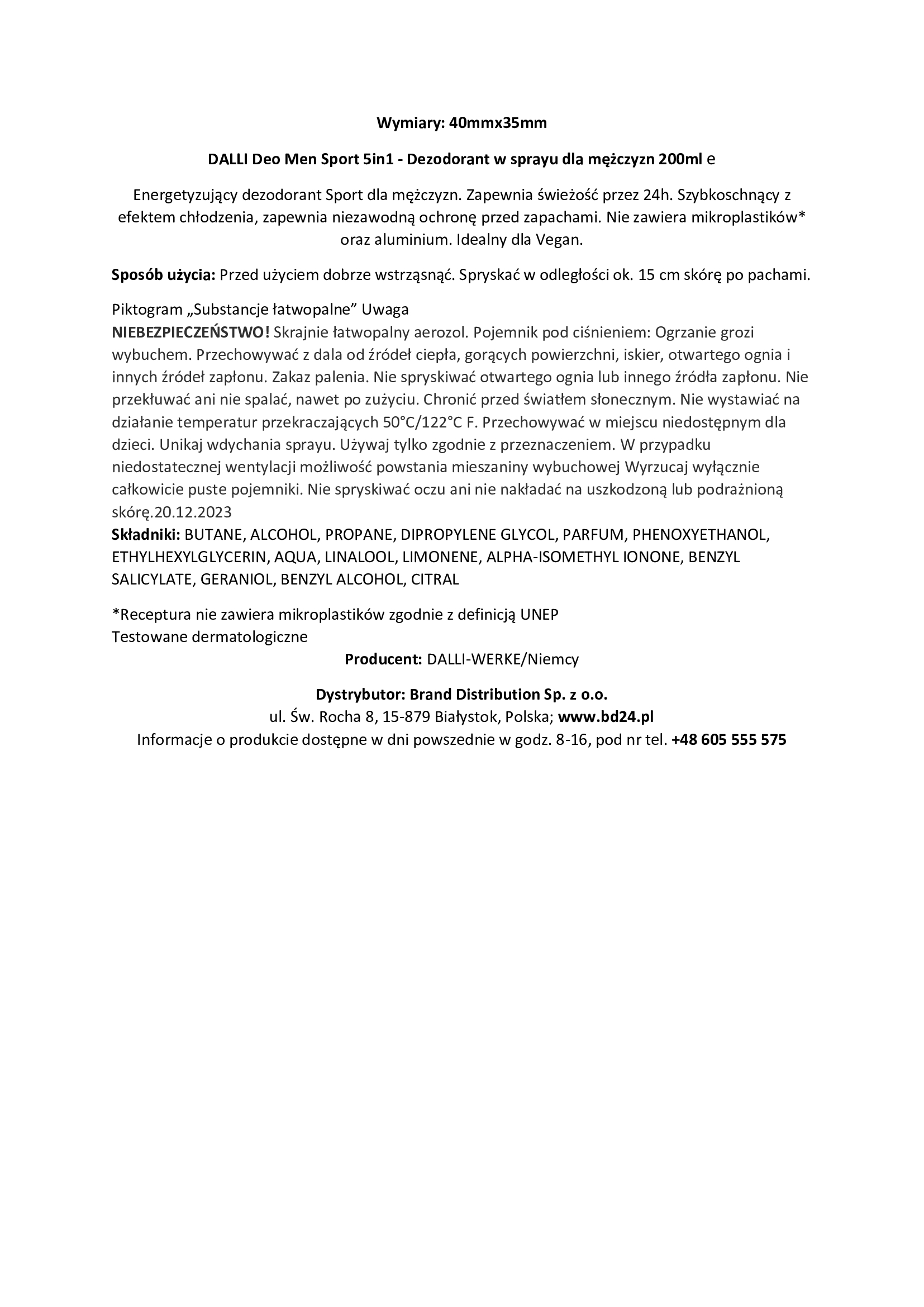 Nazwa firmy: brand distribution sp. z o.o. ulica i numer: św. rocha 8 kod pocztowy i miasto: 15-879 białystok pl