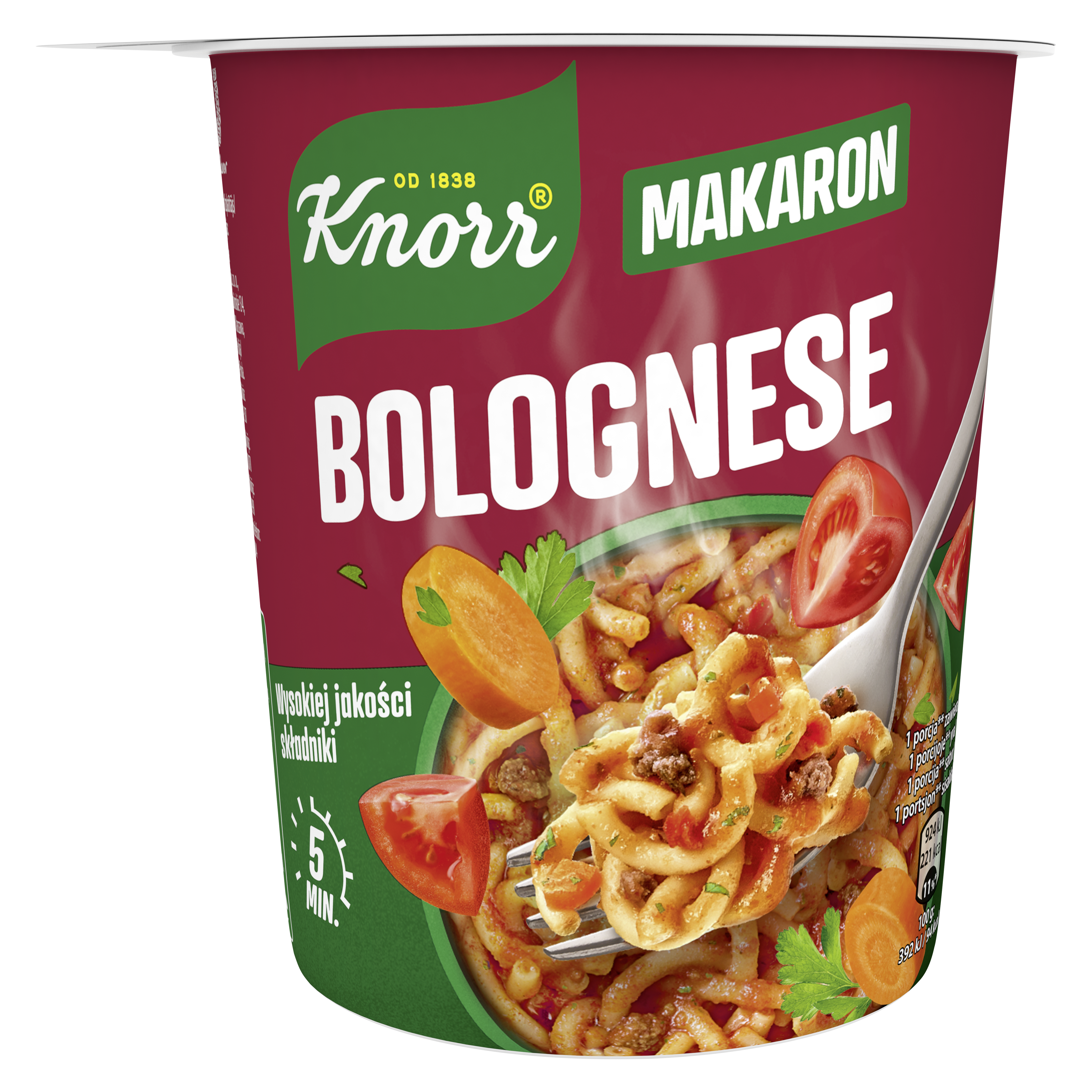 | Składniki | Makaron (66%)(semolina z pszenicy durum, mąka pszenna), koncentrat pomidorowy (10%), tłuszcz palmowy, cebula (4%), mięso wołowe(1%), ekstrakt drożdżowy, aromaty, sok z marchwi w proszku (1%), pomidory (1%), seler, cukier, sól, mineralna sól potasowa, marchew (0,5%), natka pietruszki (0,2%), oregano (0,1%),sól jodowana, czosnek, pieprz, czerwona papryka, maltodekstryna, białko jaja. może zawierać gorczycę, mleko, sezam, soję i inne zboża zawierające gluten. |