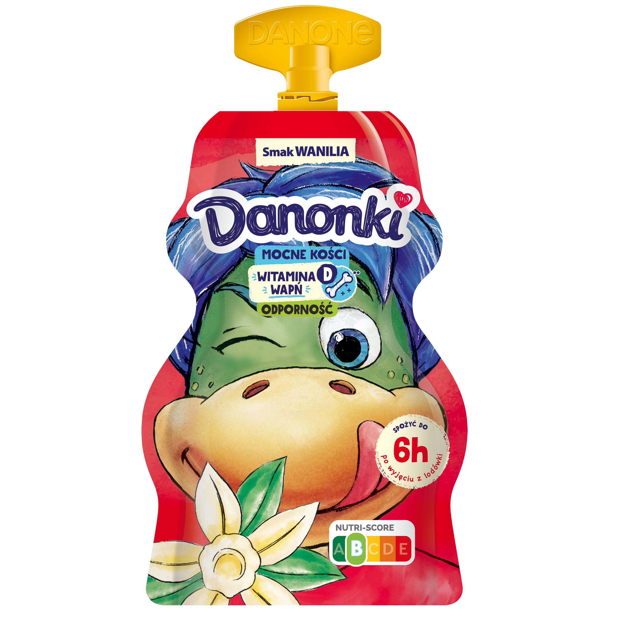 | Składniki | I: mleko 81 %, cukier, woda, skrobia, koncentrat białek mleka, skrobia modyfikowana, wapń, mleko odtłuszczone w proszku, aromat, aromaty waniliowe, żywe kultury bakterii jogurtowych, witamina d. |