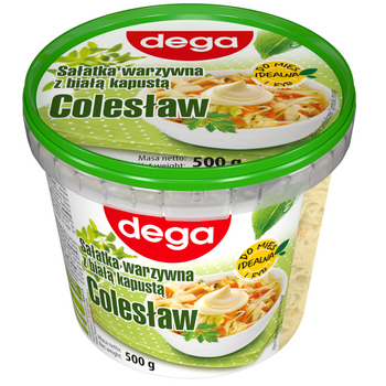 | Składniki | Kapusta, woda, marchew, olej rzepakowy, ogórek, cukier, kukurydza, ocet spirytusowy, sól, przyprawy (zawierają gorczycę), skrobia modyfikowana, żółtko jaja w proszku, substancje konserwujące: sorbinian potasu, benzoesan sodu; regulatory kwasowości: kwas mlekowy, kwas jabłkowy, kwas winowy; substancja słodząca: sacharyny. produkt może zawierać ryby, seler, nasiona sezamu, mleko, pszenicę, soję, skorupiaki. |