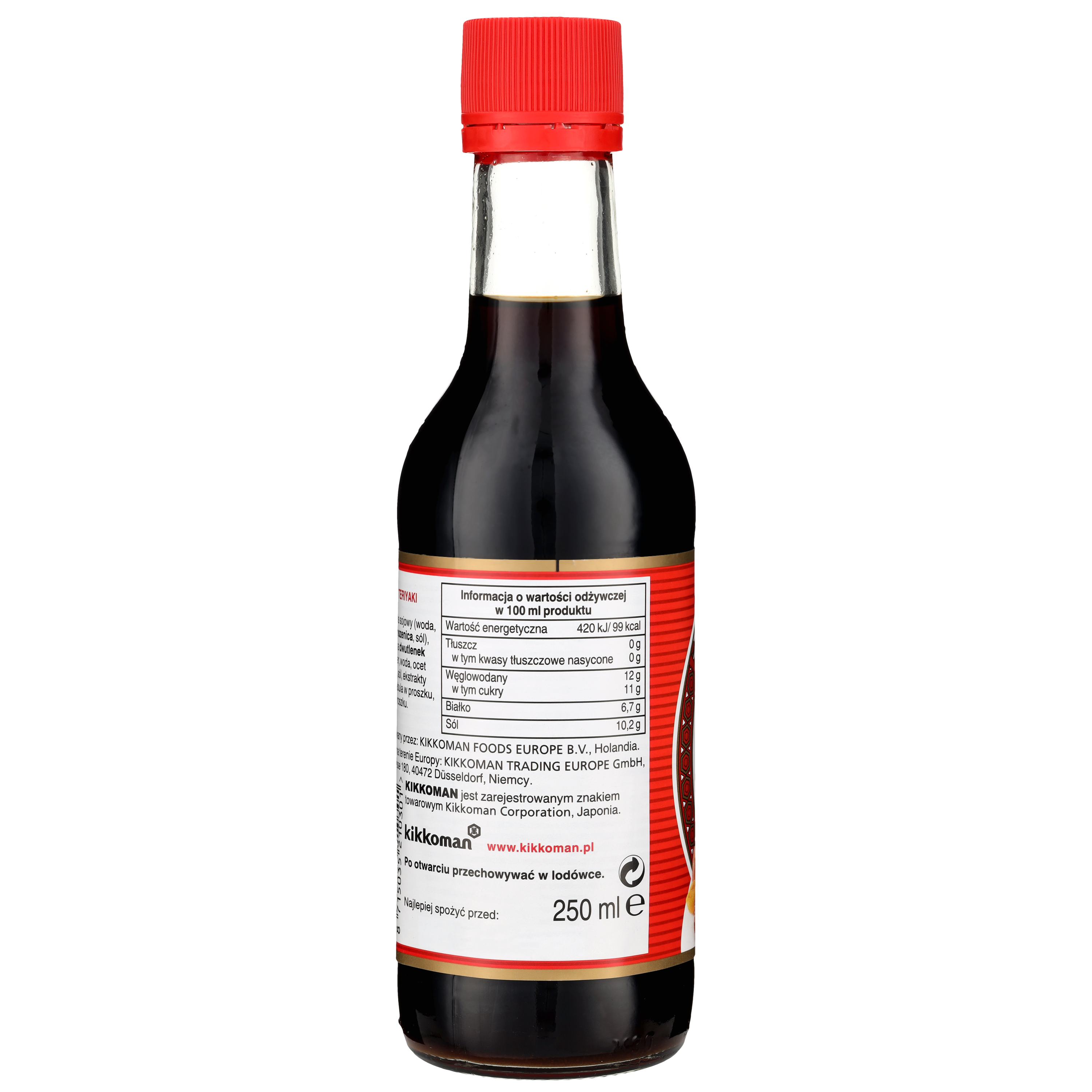 | Składniki | Sos sojowy (woda, ziarno soi, pszenica, sól) wino (zawiera dwutlenek siarki), cukier, woda, ocet spirytusowy, sól, ekstrakty przypraw, cebula w proszku, czosnek w proszku. |