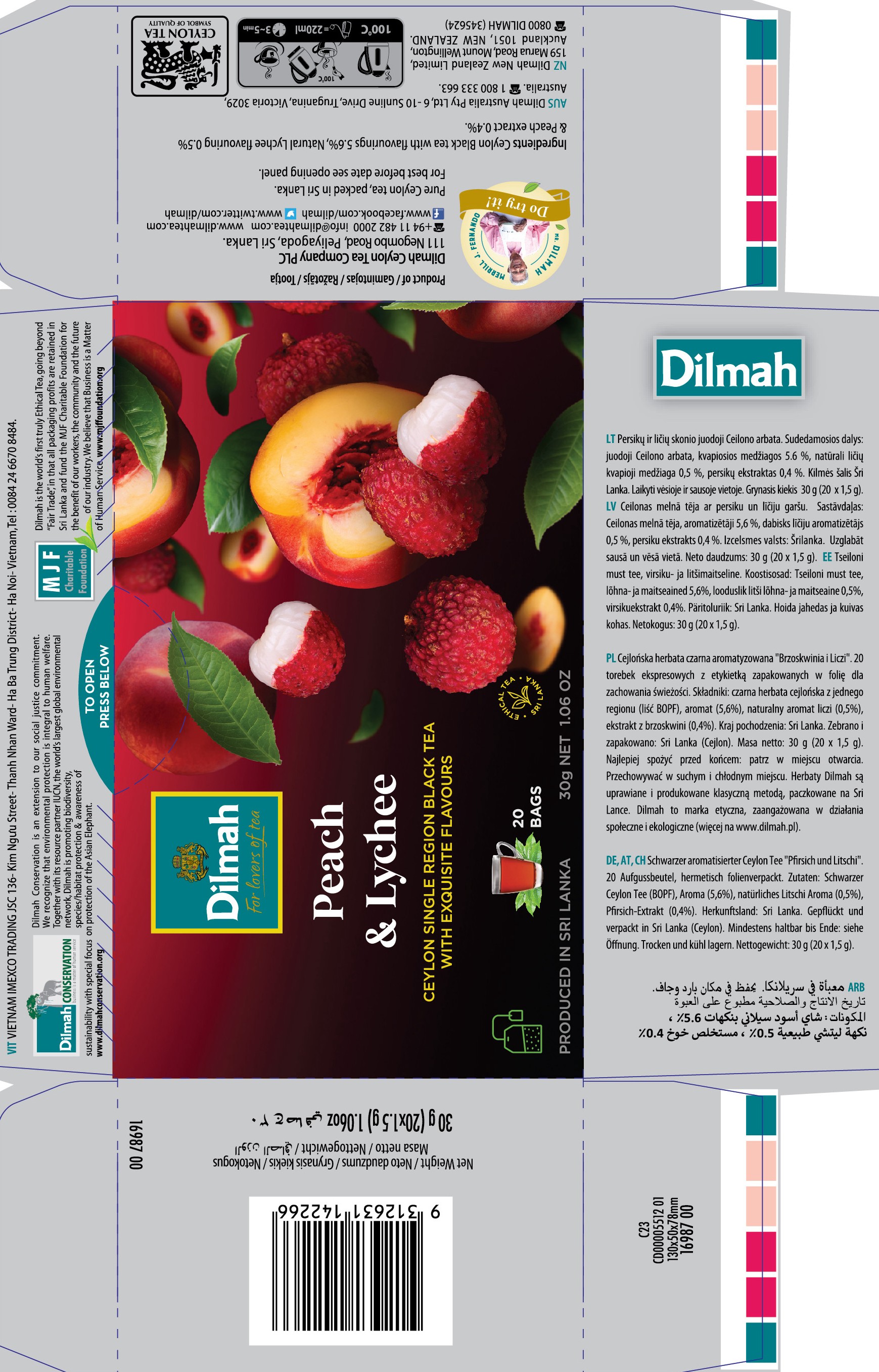 Dilmah Cejlońska czarna herbata z aromatem brzoskwini i owocu liczi 30 g