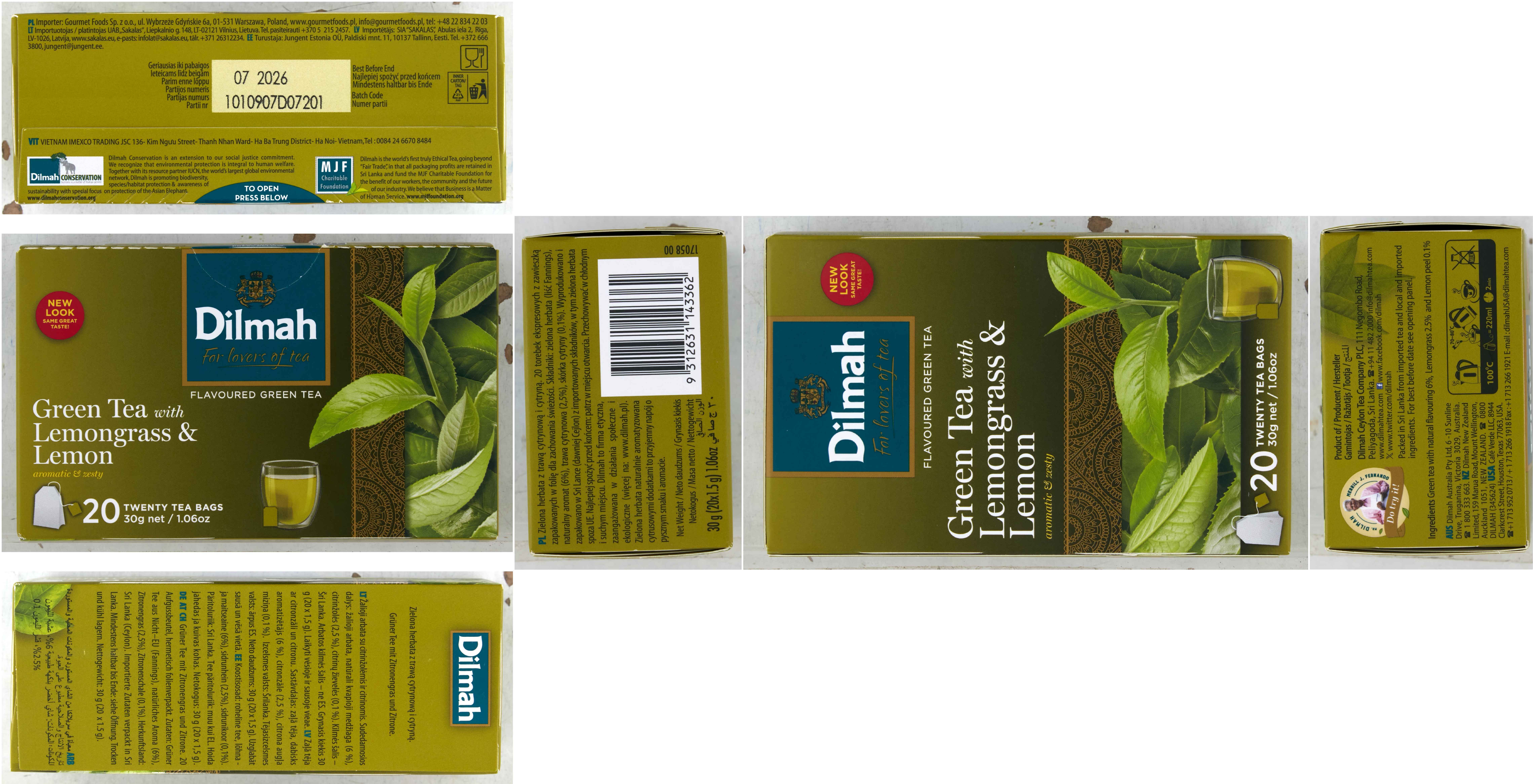 Dilmah zielona herbata z trawą cytrynową i aromatem cytryny 30 g