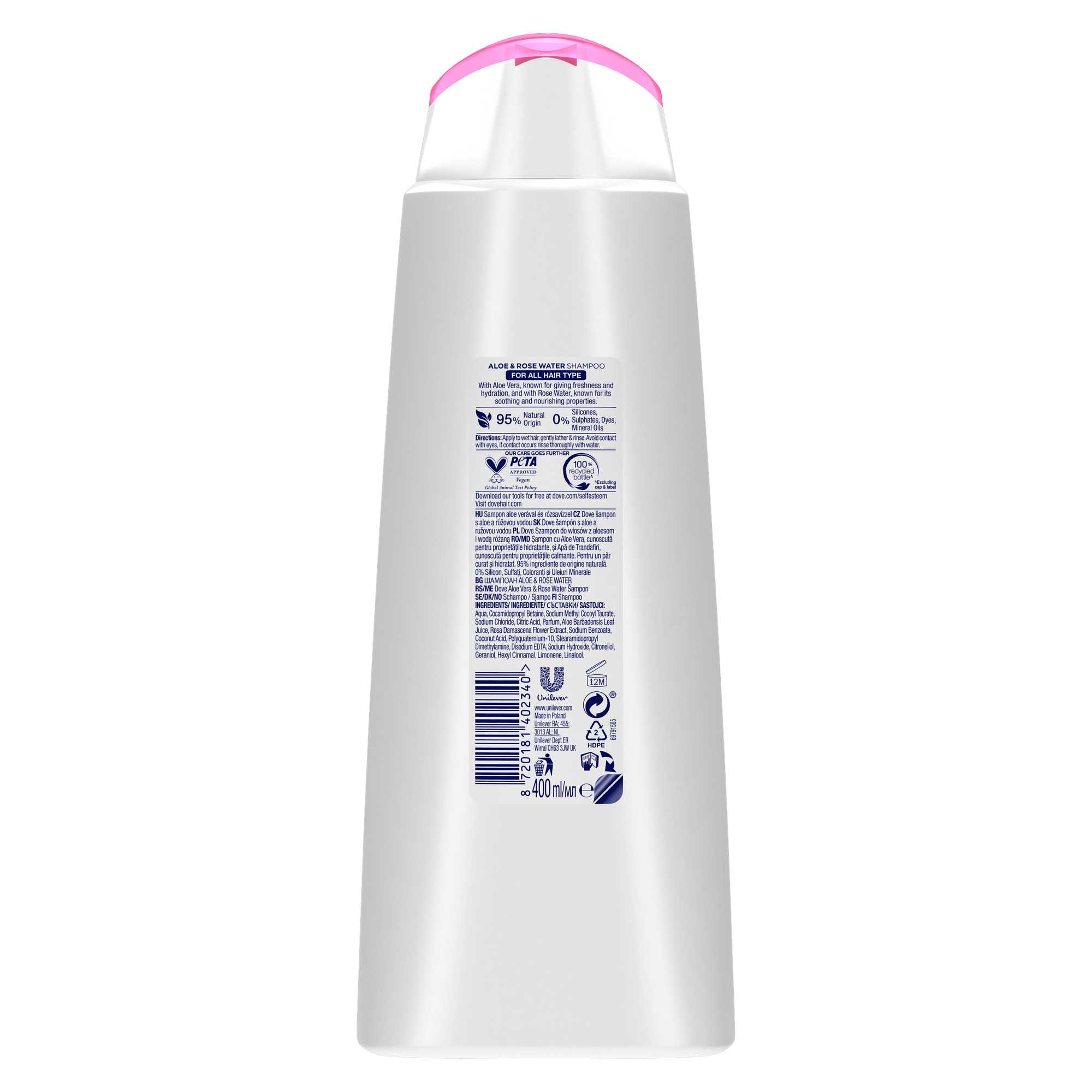 Dove Szampon do włosów z aloesem i wodą różaną 400 ml