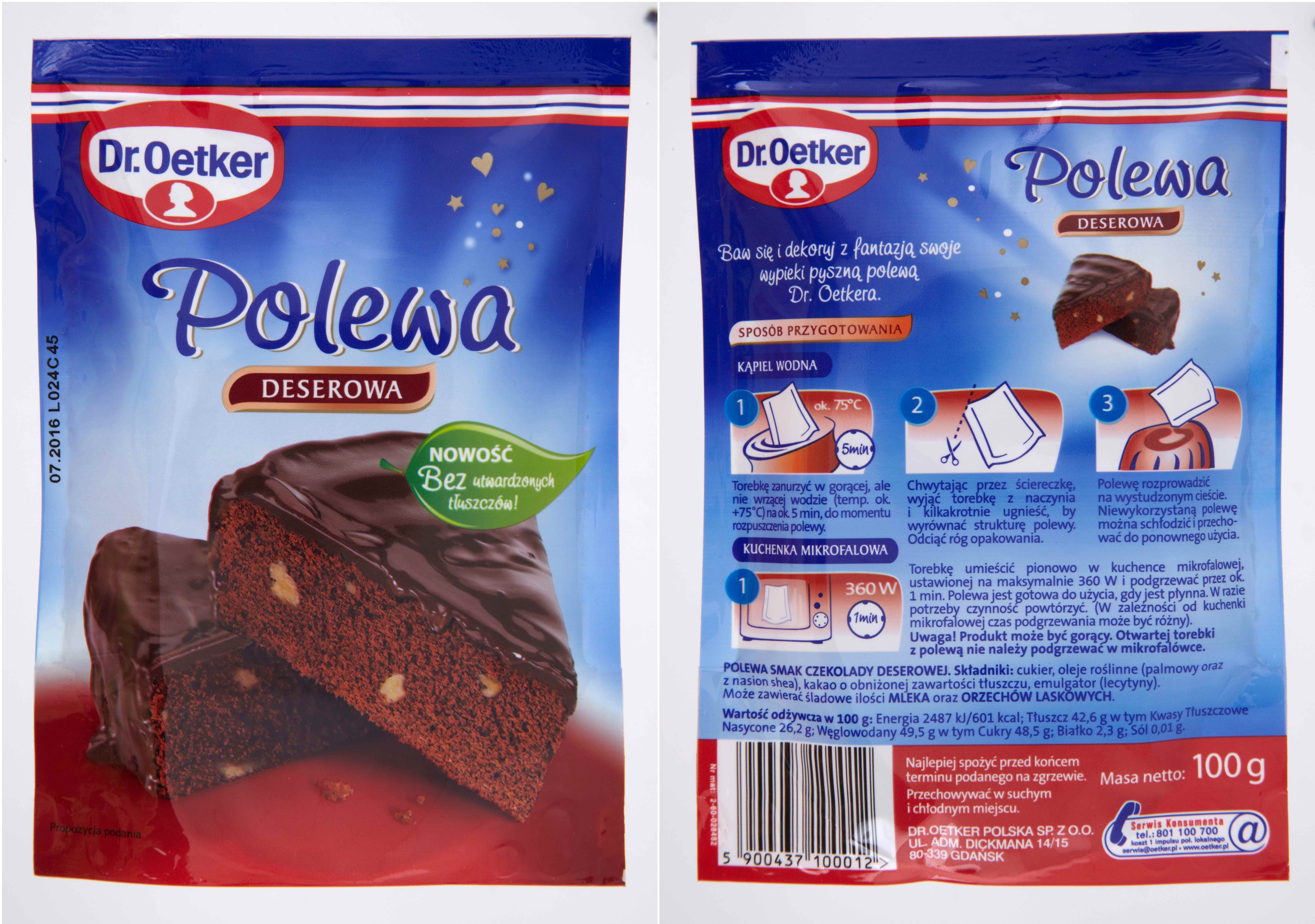 Wystarczy podgrzać torebkę w gorącej wodzie lub kuchence mikrofalowej i polewa jest gotowa do użycia. Funkcjonalne opakowania umożliwiają podgrzewanie i wylewanie polewy prosto z torebki bez potrzeby używania dodatkowych naczyń. Oprócz efektu dekoracji oblane polewą wypieki dłużej zachowują swoją świeżość.