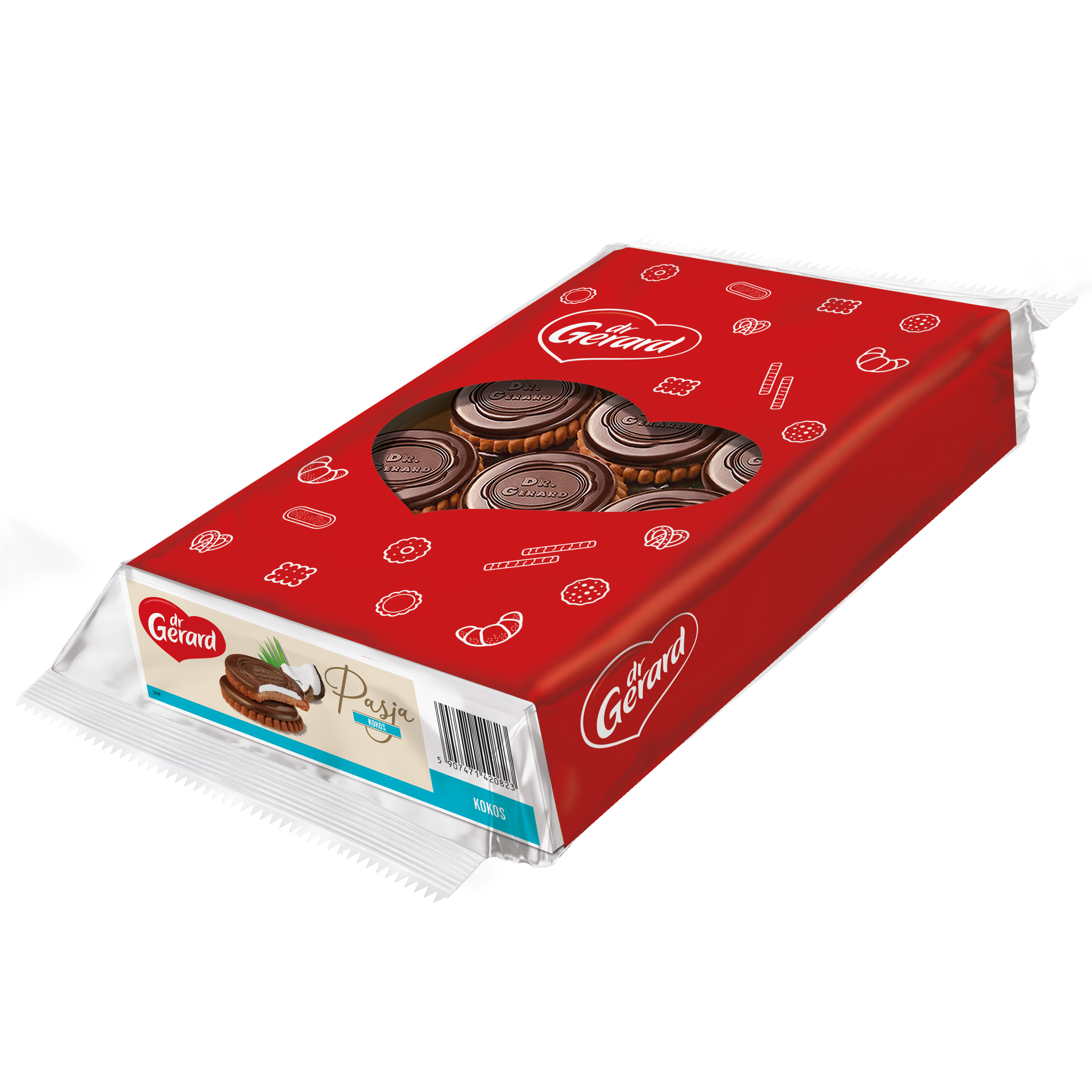 | Krótki opis marketingowy | Herbatniki z kremem kokosowym (30 %) i kakaową skorupką (30 %). |