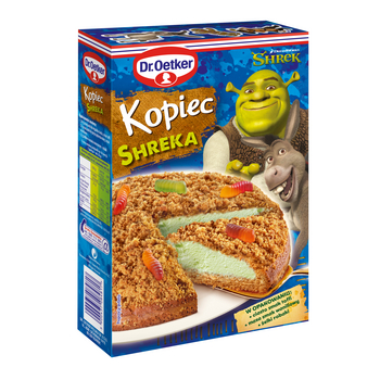| Instrukcje dotyczące przygotowania | 1. pamiętaj o schłodzeniu śmietanki, aby dobrze się ubiła. piekarnik nagrzej do temp.180℃ (bez termoobiegu). okrągłą formę wysmaruj tłuszczem lub wyłóż papierem do pieczenia. mieszankę do ciasta wsyp do miski, dodaj masło lub margarynę, jajka i mleko (wszystkie składniki w temp. pokojowej). całość miksuj na najwyższych obrotach przez ok. 3 min do uzyskania gładkiej konsystencji. ciasto rozłóż równomiernie w formie. 2. wstaw do nagrzanego piekarnika i piecz na środkowym poziomie. temperatura pieczenia: ok. 180°℃ czas pieczenia: ok. 30-35 min 3. upieczone ciasto oddziel ostrym nożem od brzegów formy, zdejmij obręcz i wystudź. wyłóż ciasto na płaski talerz, wydrąż miąższ na głębokość ok. 0,5 cm zostawiając na brzegu 1 cm nienaruszonego ciasta. okruchy przełóż do miski i równomiernie rozkrusz. 4. masę można ubijać po ostudzeniu i wydrążeniu ciasta. mocno schłodzoną śmietankę wlej do wysokiego naczynia. dodaj mieszankę do masy i ubij na sztywno. masę wyłóż na wystudzony spód ciasta, a następnie całość posyp pokruszonym ciastem tworząc kształt kopca. ciasto może się obsypywać - to typowe dla kopca shreka. udekoruj żelkami w kształcie robaków. do momentu podania ciasto najlepiej przechowywać w lodówce. |