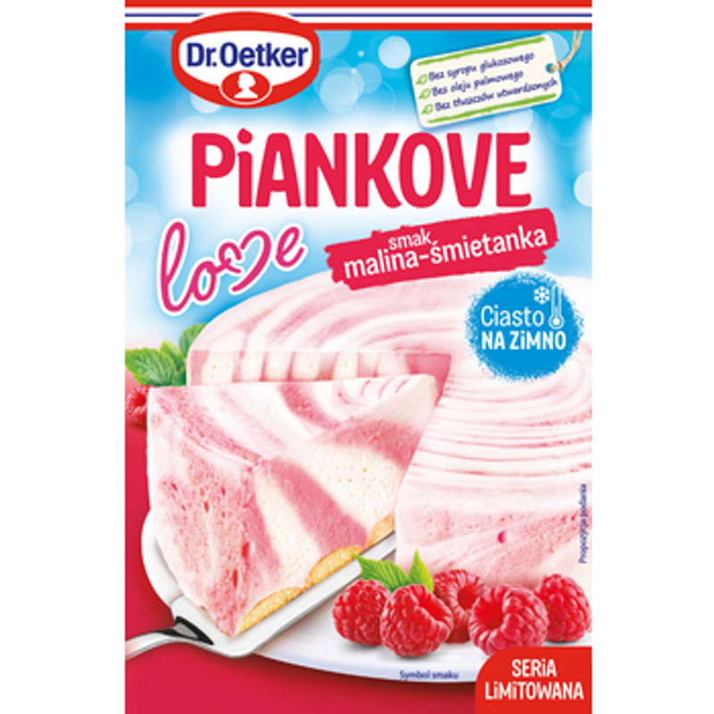 | Instrukcje dotyczące przygotowania | Mocno schłodź mleko, aby dobrze się ubijało. 1) spód formy (fi 24cm) wyłóż papierem do pieczenia i/lub biszkoptami. do szklanki wlej 150ml ciepłej wody, czyli 75ml wrzątku (ok. 8 łyżek) +75 ml zimnej (ok. 8 łyżek). wsyp mieszankę śmietankową i energicznie mieszaj do dokładnego rozpuszczenia. następnie w ten sam sposób rozpuść mieszankę malinową. 2) mocno schłodzone mleko zagęszczone niesłodzone ubijaj na najwyższych obrotach miksera przez ok. 1,5 min - do uzyskania jednorodnej pianki. powstałą mleczną piankę przemieszaj łyżką i połowę przełóż do drugiej miski. 3) do pierwszej miski z pianką dodaj mieszankę śmietankową i krótko zmiksuj na najwyższych obrotach miksera do dokładnego połączenia (ok. 30 sek.). tak samo postępuj z mieszanką malinową i drugą porcją pianki. 4) od razu po wymieszaniu nakładaj naprzemiennie na środek formy po 2-3 łyżki każdego smaku piankowej masy, np. 2-3 łyżki śmietankowej, potem 2-3 łyżki malinowej, itd. zaczynaj od środka, co jakiś czas lekko potrząsaj foremką na boki, aby ciasto równomiernie się rozłożyło. nie mieszaj pianki łyżką w formie. 5) wstaw do lodówki na ok. 2 godz. gdy ciasto stężeje, oddziel je nożem od formy, zdejmij obręcz i ciesz się smakiem piankowego ciasta. |