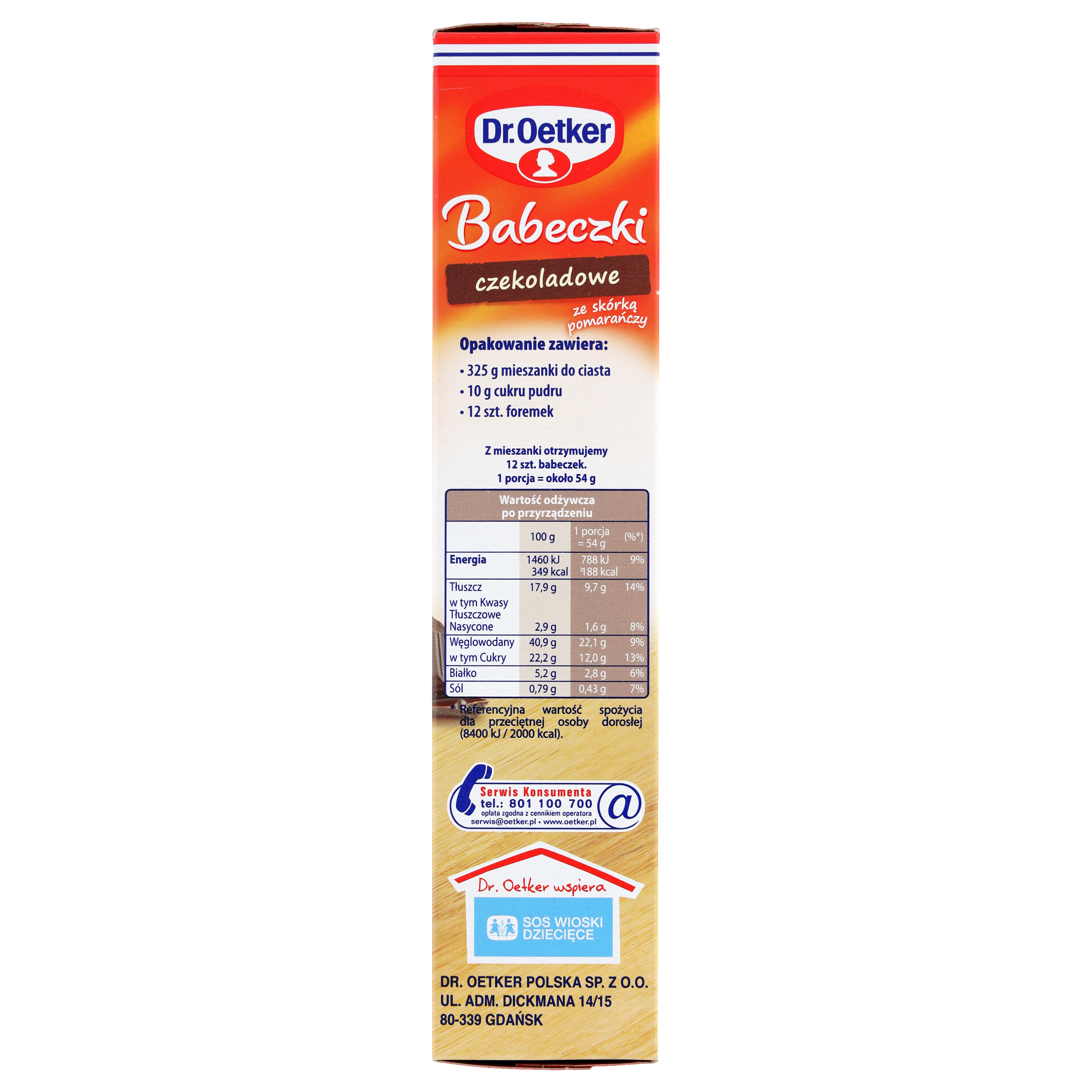 | Składniki | mąka PSZENNA, cukier, skrobia PSZENNA, 4,4% skórka pomarańczowa (54% skórka pomarańczowa, cukier, regulator kwasowości (kwas cytrynowy)), kakao o obniżonej zawartości tłuszczu, substancje spulchniające (difosforany, węglany sodu), aromaty (zawierają LAKTOZĘ), skrobia, 0,1% czekolada w proszku (kakao o obniżonej zawartości tłuszczu, cukier, dekstroza), sól. |