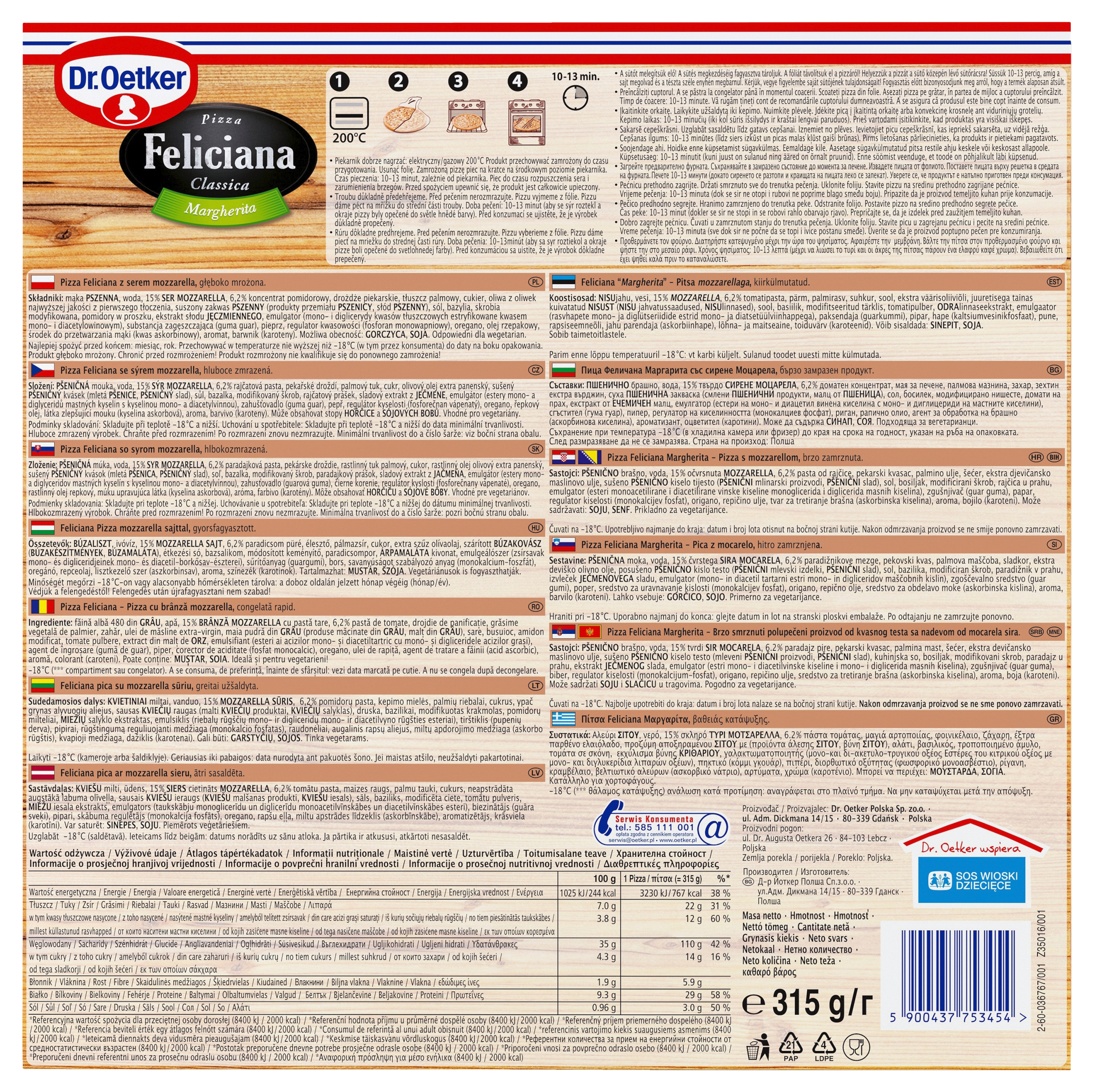 Dr. oetker pizza feliciana margherita 315 g