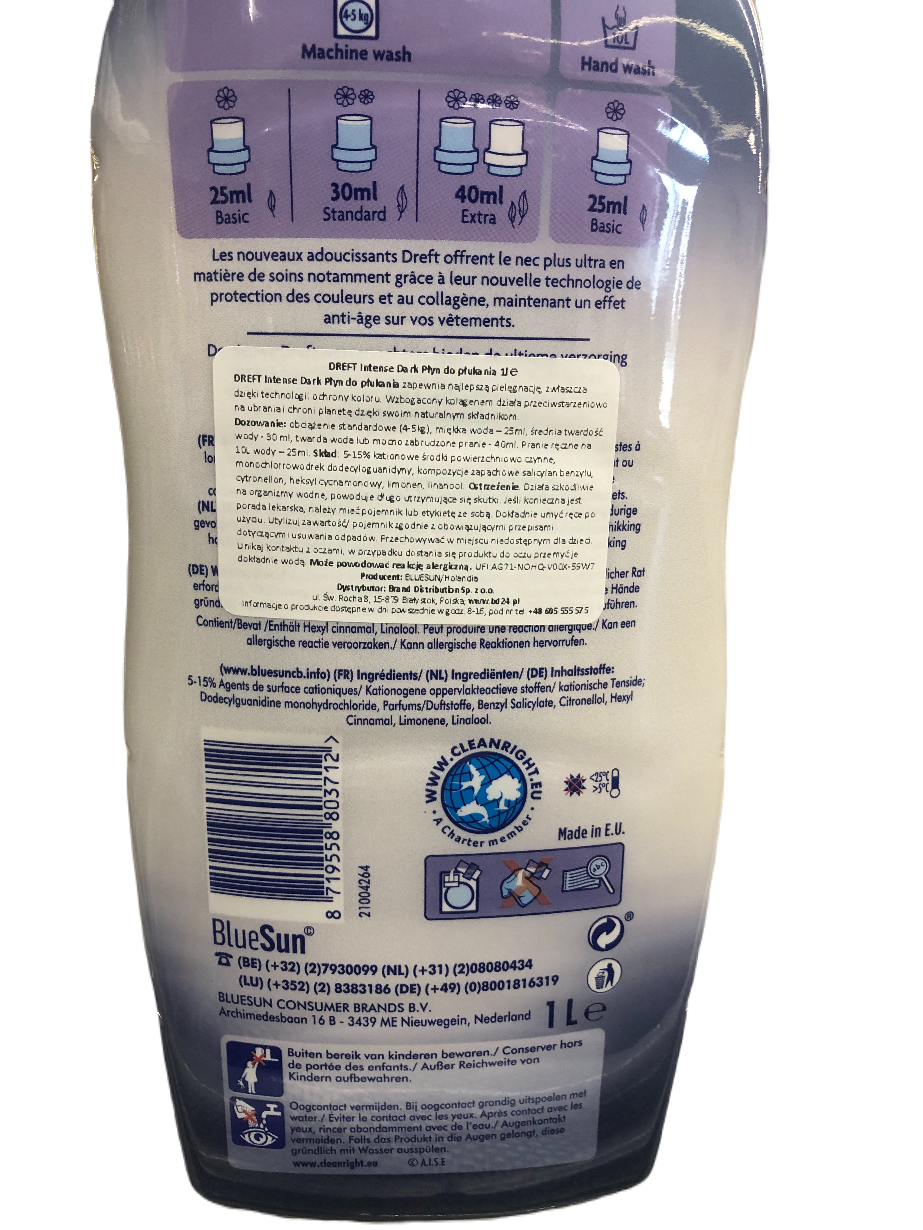 | Sposób użycia | Pranie w pralce 4-5 kg- 25ml- 40ml koncentratu; pranie ręczne 10l wody- 25 ml koncentratu |