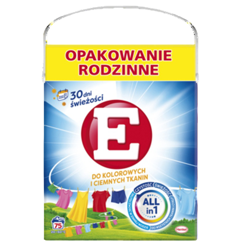 E proszek do prania All-in-1 Do wszystkich tkanin i cykli, skuteczne usuwanie plam nawet w zimnej wodzie, 30 dni świeżości