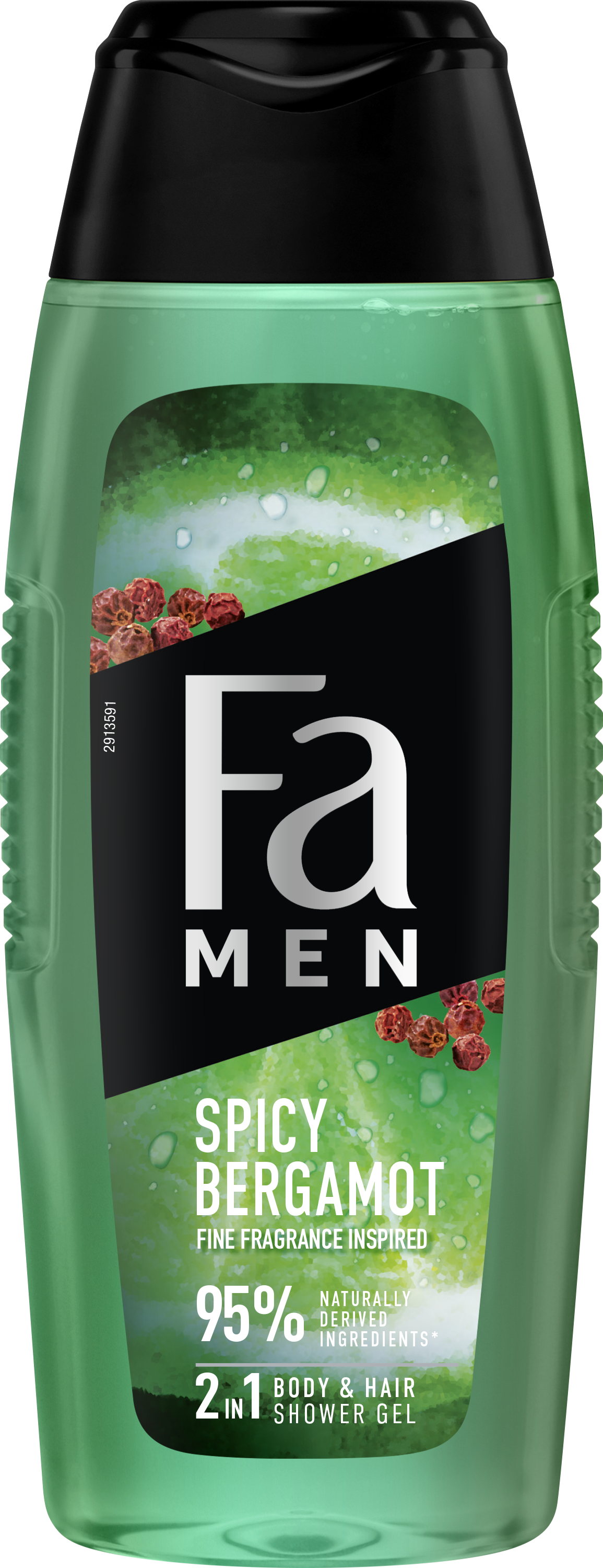 Żel 2w1 do mycia ciała i włosów FaMEN Spicy Bergamot o korzennym zapachu bergamotki.