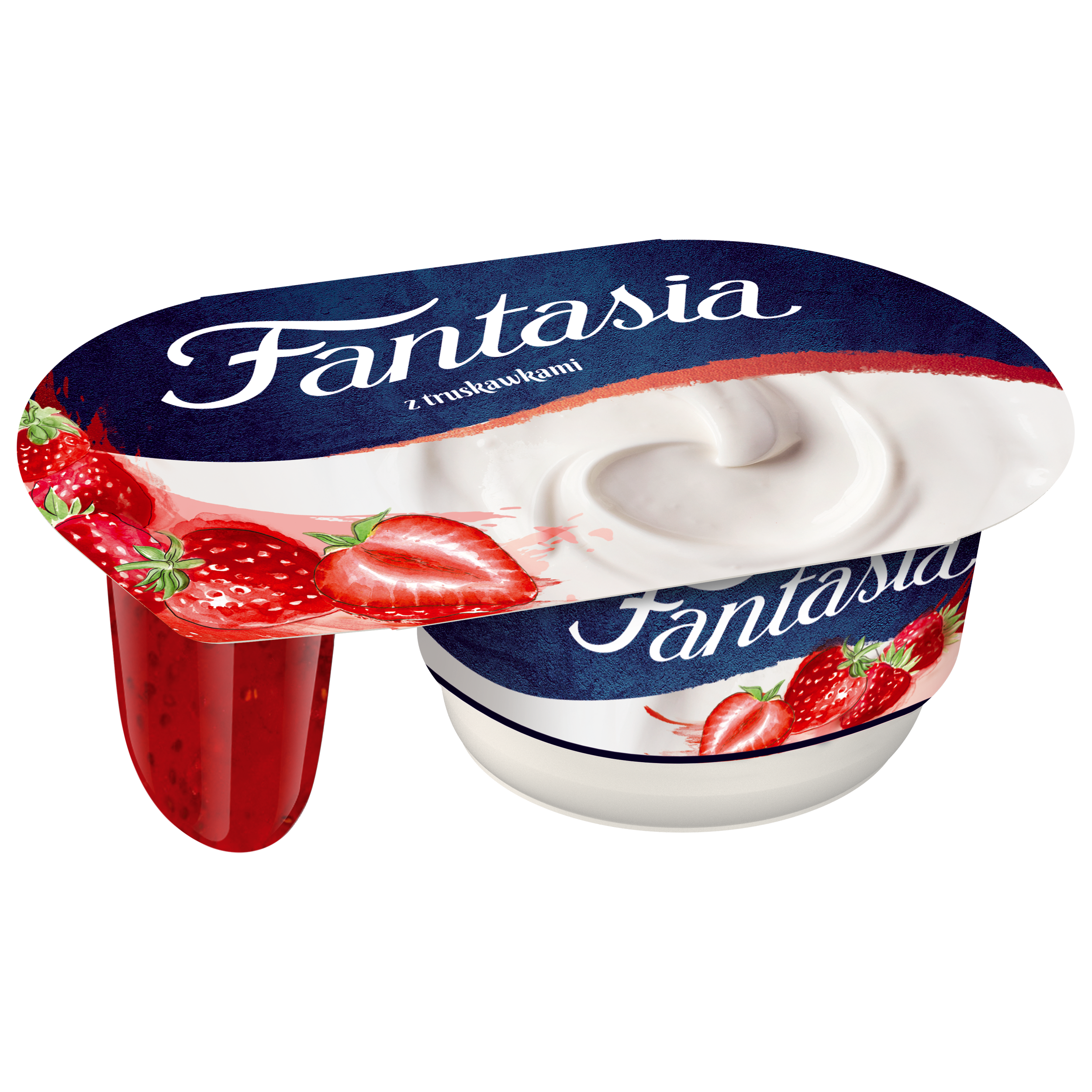 Danone Fantasia jogurt kremowy z truskawkami to Twój moment przyjemności. Sięgnij po dwufazowy kubeczek i zjedz Danone Fantasia tak, jak lubisz najbardziej. Wymieszaj jogurt z dodatkami lub zjedz je osobno - decyzja należy do Ciebie. Oderwij się na chwilę od codziennych obowiązków - rozpłyń się w truskawkowym smaku i delektuj się kremowym jogurtem. Poznaj Danone Fantasia także z innymi dodatkami i znajdź swój ulubiony smak! Moja Fantasia. Moja chwila.