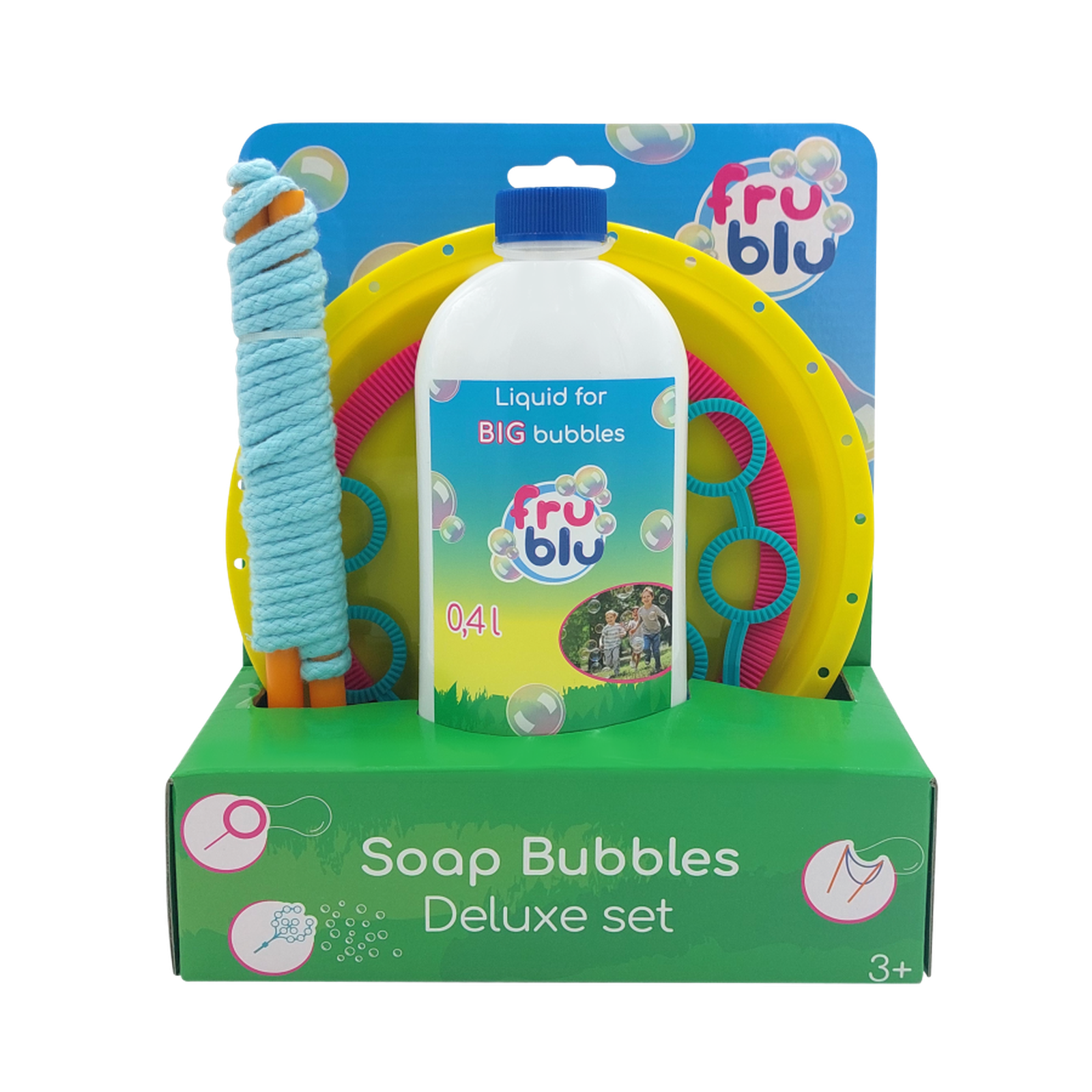 W tym sezonie przedstawiamy nową, kompaktową wersję produktu, która jest nie tylko łatwa do przechowywania, ale także zapewnia wyjątkową łatwość samodzielnego złożenia. To idealna propozycja dla tych, którzy cenią wygodę i prostotę użytkowania. Deluxe to zestaw kilku akcesoriów, dających możliwość stworzenia różnej wielkości baniek: od malutkich, poprzez większe, po naprawdę gigantyczne! Trzy akcesoria pozwalają na zróżnicowanie zabawy i doskonalenie bańkowych umiejętności. To idealna propozycja na urozmaicenie urodzin czy imprez plenerowych. Jak bawić się zestawem deluxe do baniek mydlanych? Wlej płyn do talerzyka. Zanurz w nim wybrane akcesoria. Ruszaj nimi na boki, a powstaną wyjątkowe bańki! Zestaw zawiera trzy akcesoria (obręcz, drzewko i sznurek), talerzyk na płyn oraz butelkę z płynem o pojemności 0,4 litra. Zabawka przeznaczona jest dla dzieci powyżej 3. roku życia.