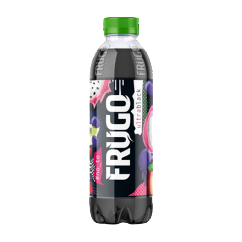 FRUGO ULTRABLACK - napój wieloowocowy, niegazowany. Pasteryzowany. Zawiera cukier i substancję słodzącą. Wyprodukowany z zagęszczonych soków i przecieru (zawartość soków min. 20 %).